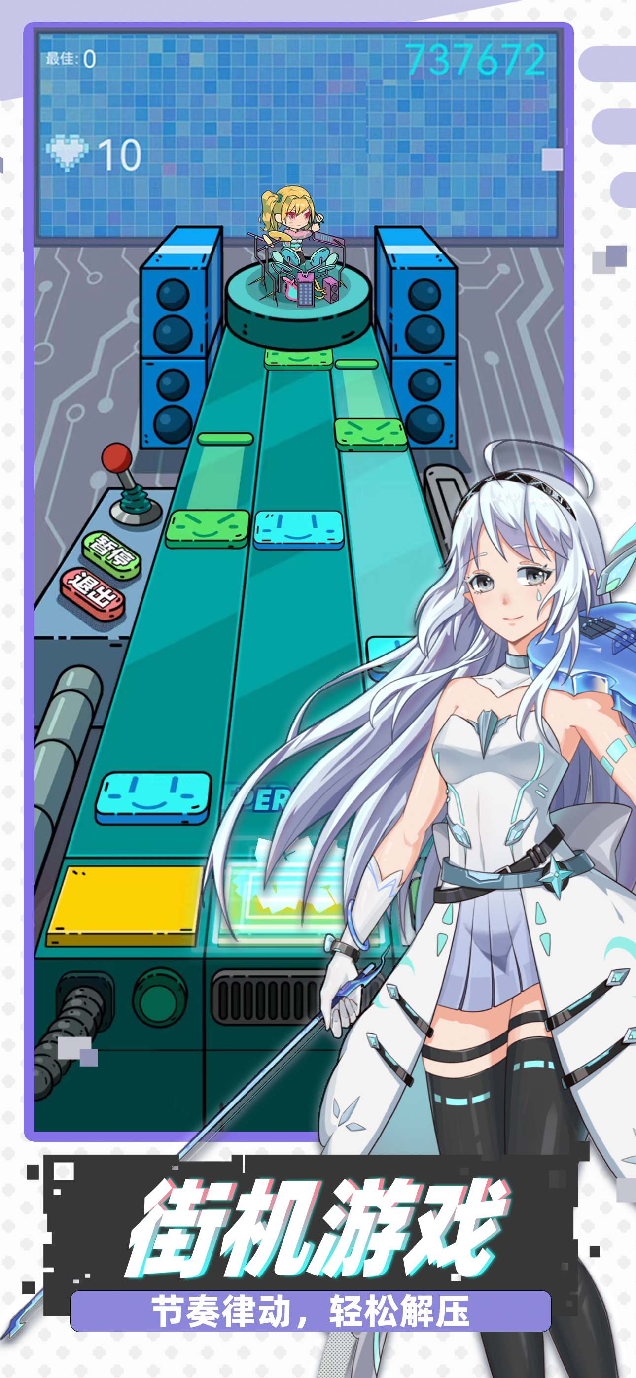 感觉还可以,但是直播那个黑粉的发言删除方式可以改改吗?改成连戳几下消除那种,现在这种我每次都滑不到。还有不知道是不是我手机问题我判断贼怪(顺手问问可以调延时吗没玩多久就没玩了) 喜欢收集养成的可以试试,三轨音游很好入门歌也蛮好听的(爬走)