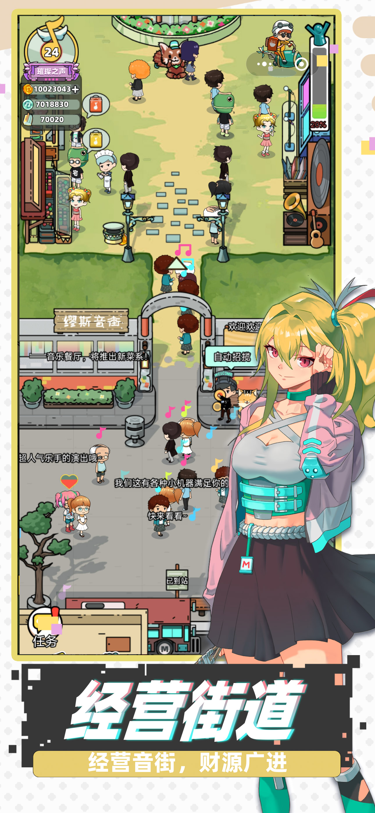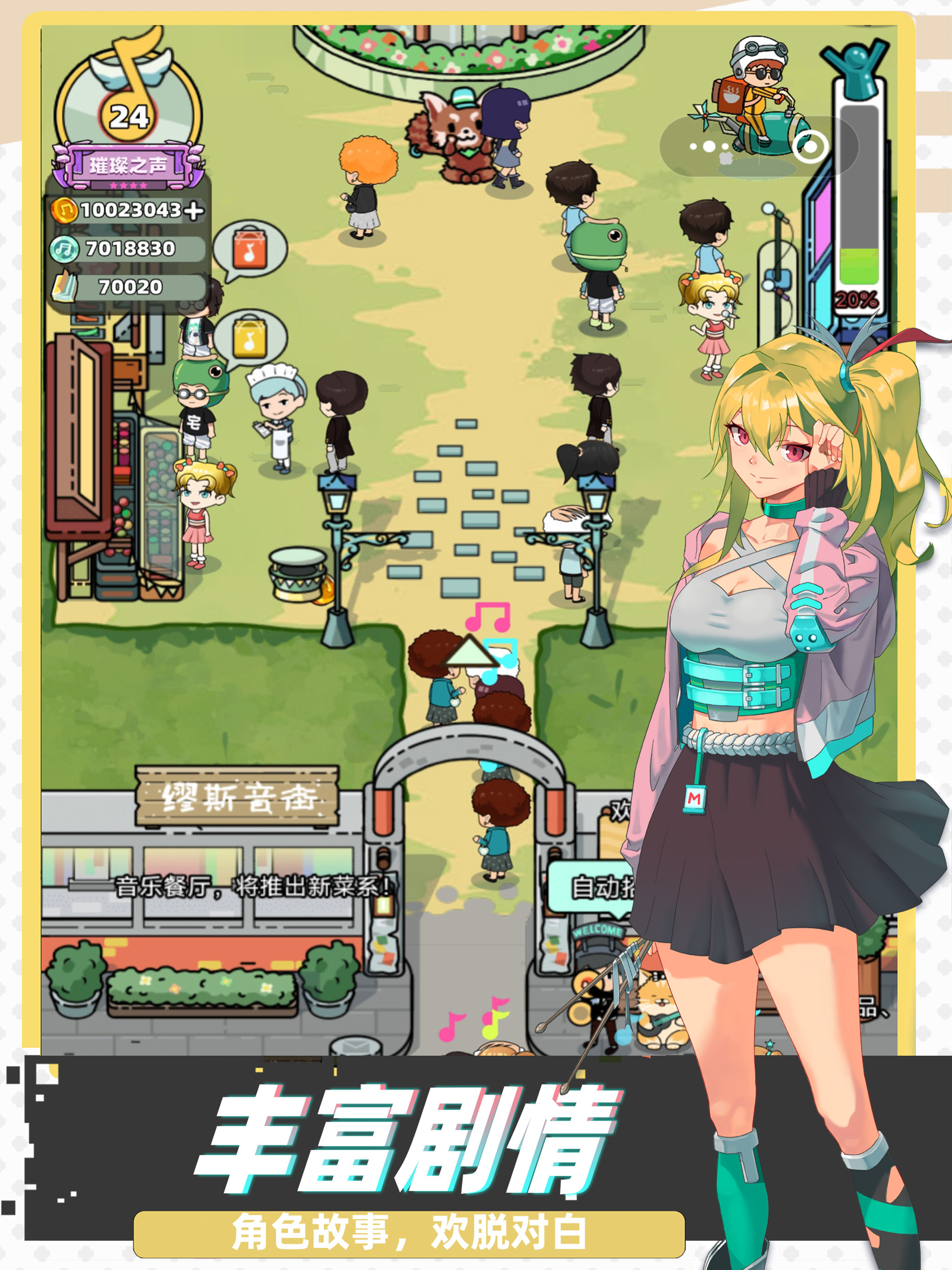 《缪斯音街》是一款融合乐手养成与模拟经营的游戏!你将亲手打造一条属于自己的音乐街区,招募并培养风格各异的乐手,与他们一起登上热血舞台,从破旧街头一路经营升级,打造最炫酷的音街奇迹! 【节奏演出】 感受多样音乐风格,享受手指跳跃的快感! 【招募乐手】 解锁风格各异的角色,协助你打造最炫舞台! 【经营升...