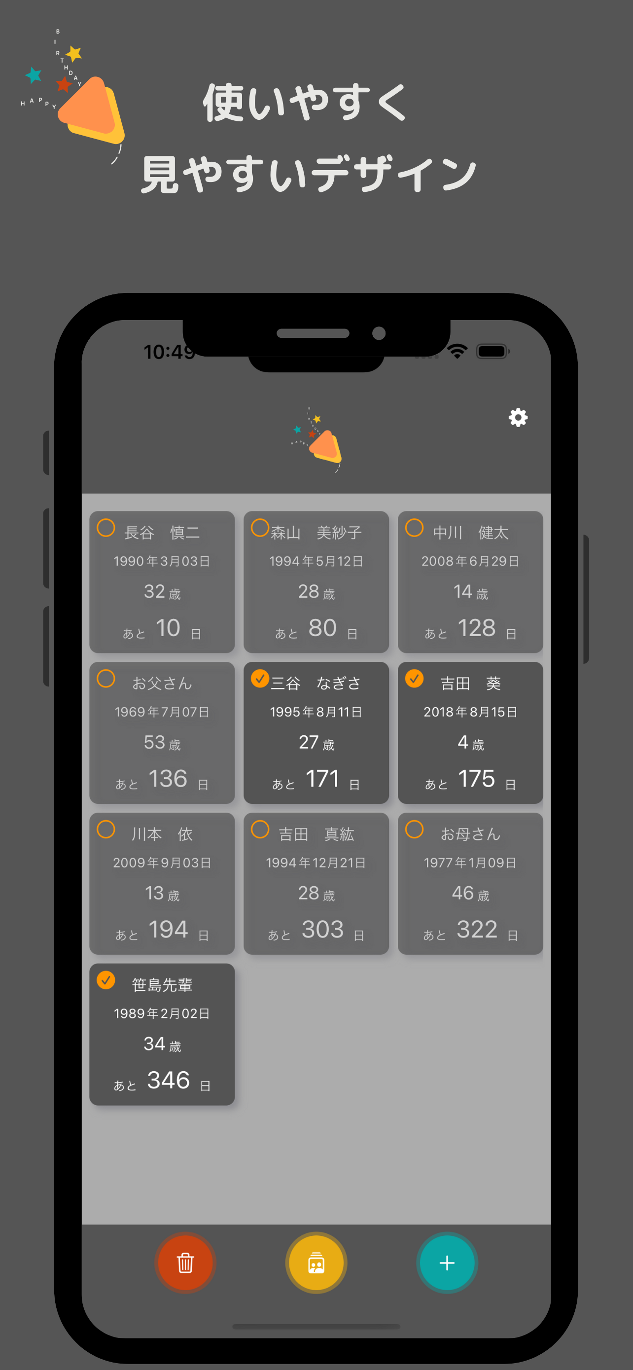\大切な人の大切な日を忘れずにお祝いするためのアプリ/ ◇「みんなの誕生日」でできること 1.友達の誕生日を記録 2.年齢や星座、干支を自動計算 3.誕生日まで後何日か一目でわかる 4.誕生日当日または前日に通知が届く 5.通知メッセージもカスタマイズ可能! 6.関係ごとにカテゴライズ(カテゴリ名...