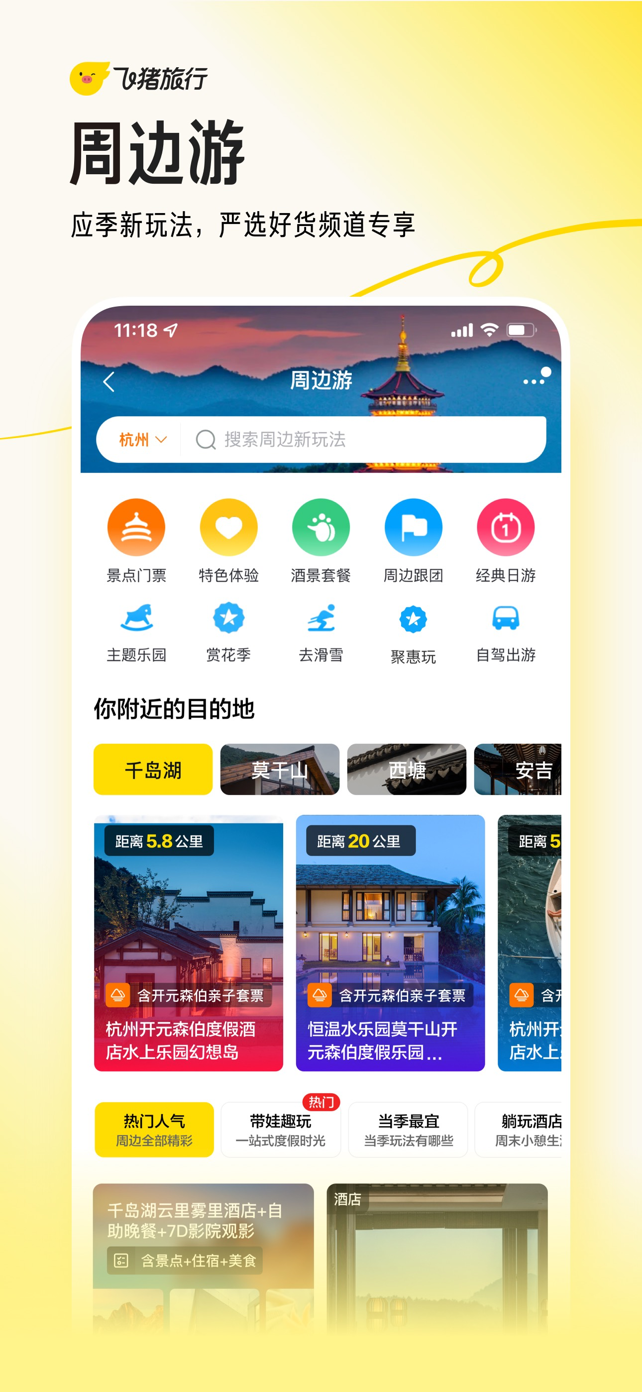 飞猪旅行是阿里巴巴集团旗下旅行品牌,提供机票、酒店、火车票、汽车票、景点门票、用车、周末游、跟团游、自由行、自驾游、邮轮、旅游度假产品任您选!精选攻略、出行保险,旨在为您提供优惠、便捷、高性价比的出行服务。 飞猪App供国内及海外众多酒店,民宿,客栈,酒店式公寓在线预订服务;提供多条国内及出境旅游...
