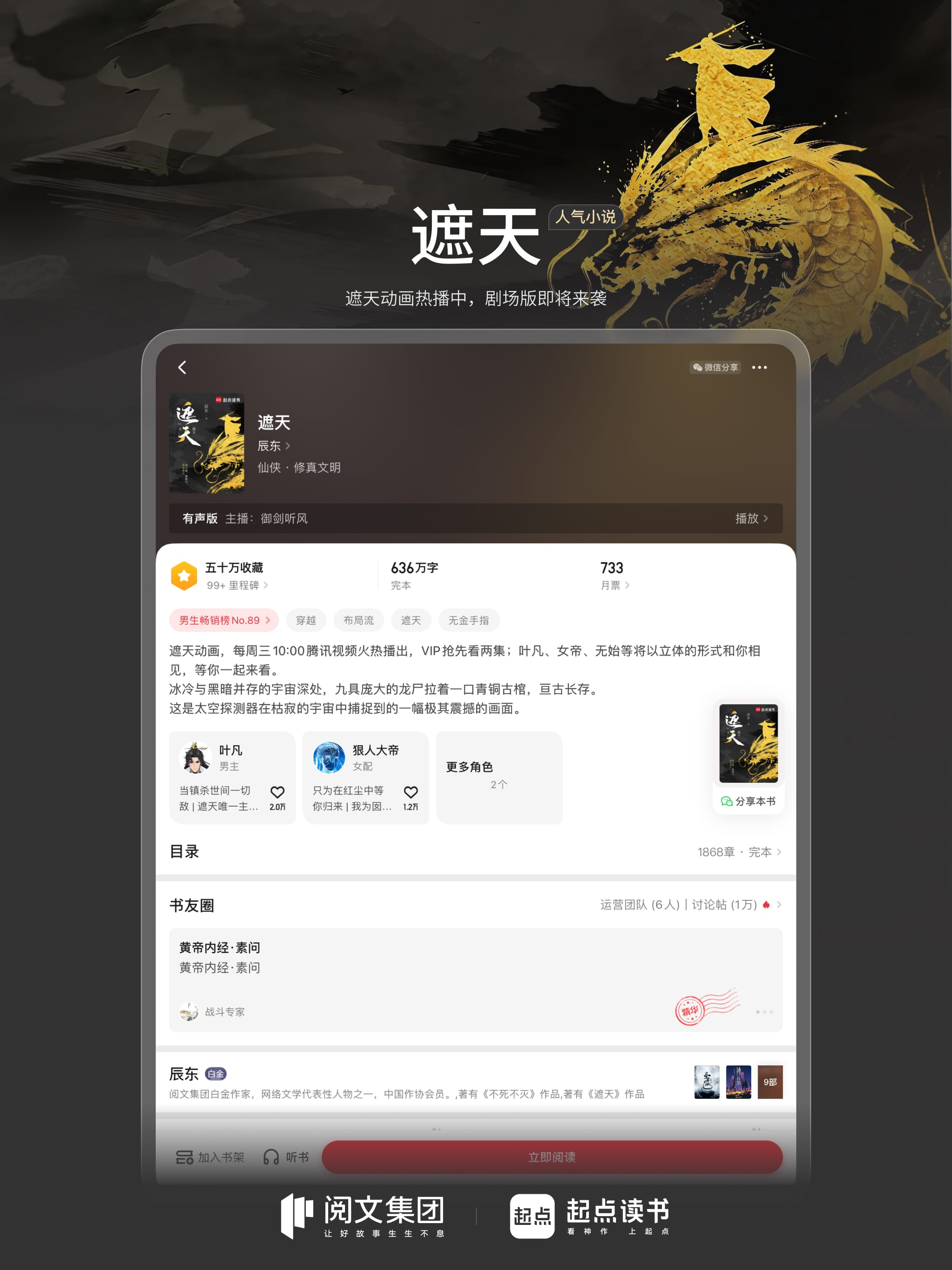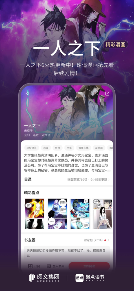 起点中文网官方移动端app,畅享正版原创网文,加入书友圈,和原创作家近距离互动。 起点读书品牌全新升级,发布全新品牌主张“看神作 上起点”,致力于为用户持续提供优质且丰富的精品内容。 ◉ 超热超全的原创小说书城,中国网络文学的起点,亿万忠实读者的选择~ 【热门内容】正版原著、精品有声、热门漫画火爆...