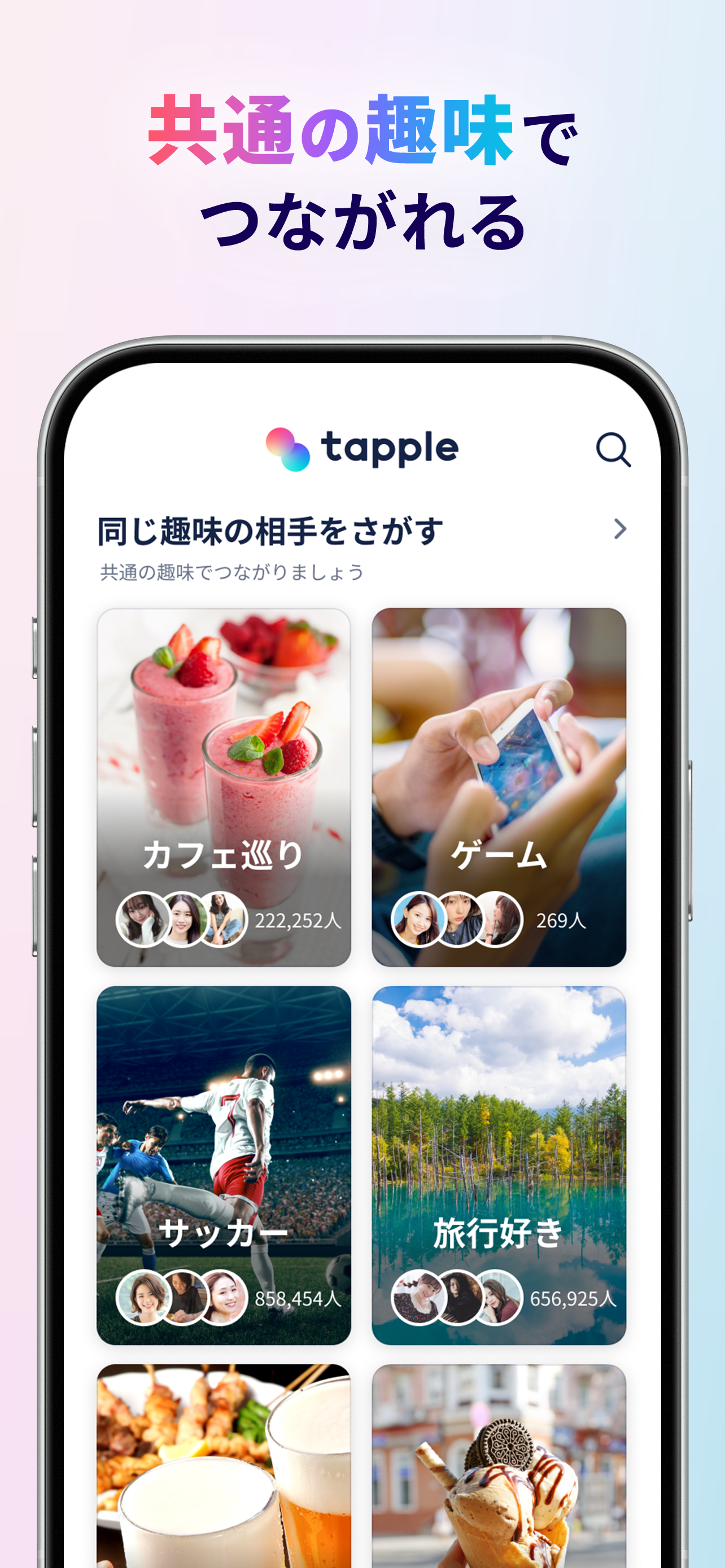 恋人探すならマッチングアプリ・タップル(tapple) 婚活・恋活マッチングアプリ・タップルで恋人探しをはじめてみませんか? タップルは真面目な出会い・恋人探しのためのマッチングアプリです。 初めてマッチングアプリを使う方や出会い探しをしたい方にもオススメ。登録&お相手の検索無料のマッチングアプリ...
