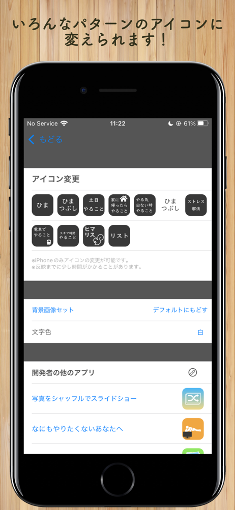 ----ヒマな時のみちしるべ--- このアプリに暇なときなどにやることをメモしておくことにより、 暇なときなどに有意義なことができるようになる可能性が増えるでしょう。 ◆アイコン変更可能 さまざまなアイコンにカンタンに変更が可能です。 アイコンが分かりやすければ起動しやすい! ◆背景を自由...