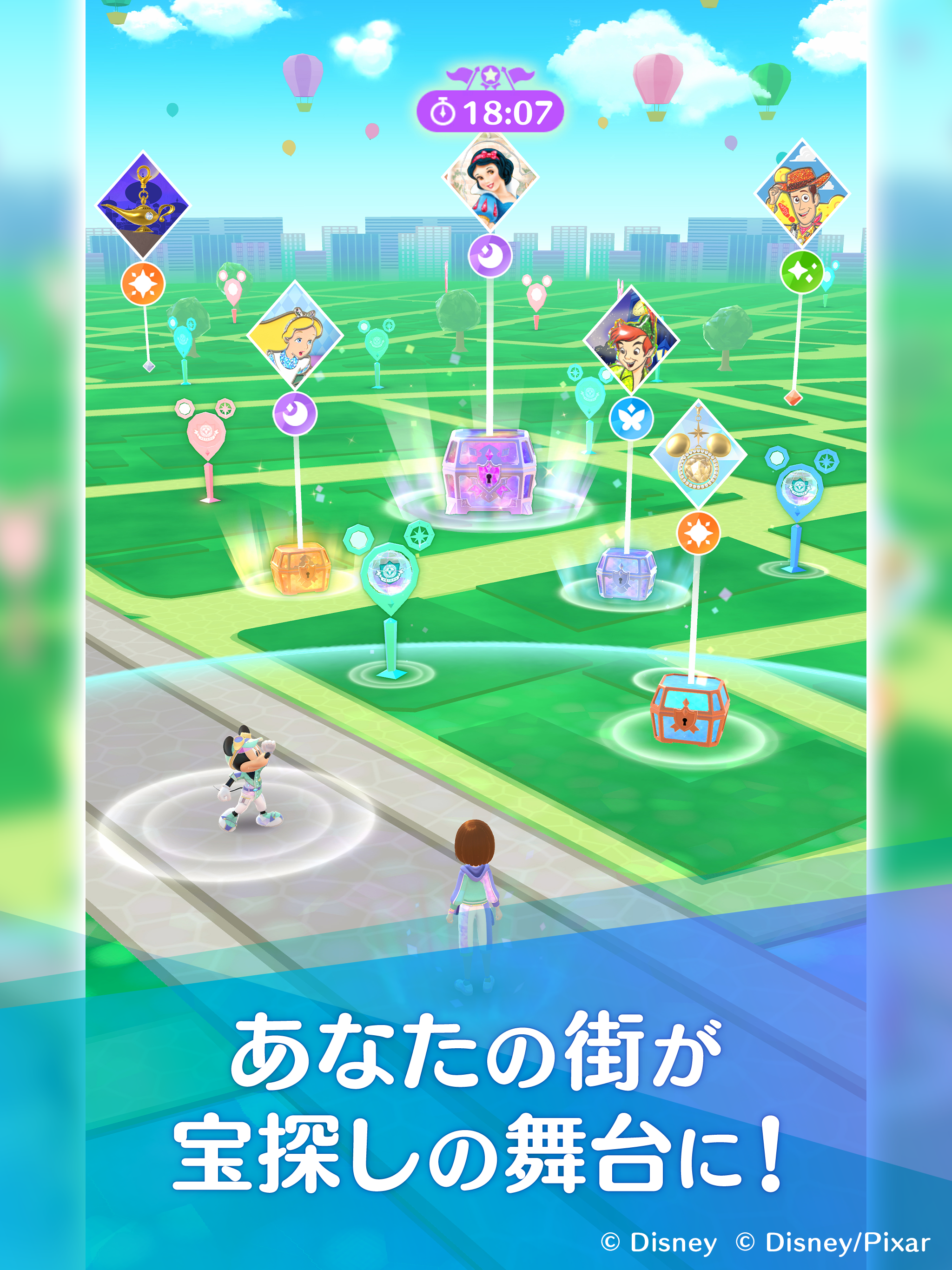 スマートフォン向け位置情報ゲーム『ディズニー ステップ(Disney STEP)』は、 あなたの街が物語の舞台となって、ミッキーたちと一緒に宝物を集めるリアルライフ宝探しゲームです。 ■ミッキーたちと一緒に宝探し ミッキー&フレンズの仲間たちと一緒に宝探しに出発! さまざまな場所を巡って宝箱を見つ...