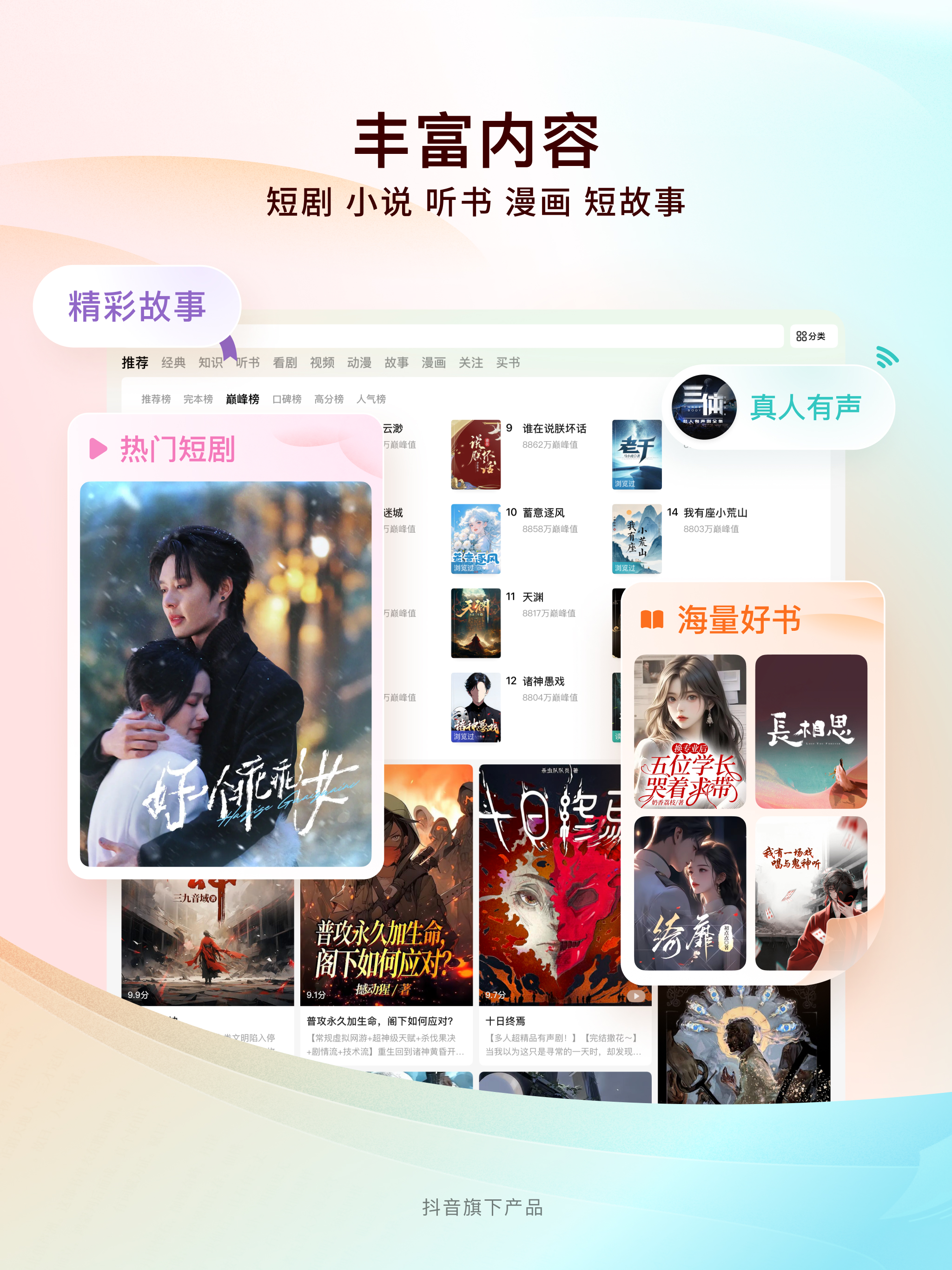 【抖音旗下】 番茄小说是抖音推出的免费阅读产品,提供海量正版小说。免费好书,尽在番茄! 【正版免费】 海量正版内容免费阅读,用好故事影响更多人。热门分类,都市爽文、言情穿越、玄幻修仙、武侠世界……你想看的这里都有。 【海量短剧】拥有海量的短剧资源,包括都市热血、甜宠言情、职场婚恋、逆袭反转、逆天改...