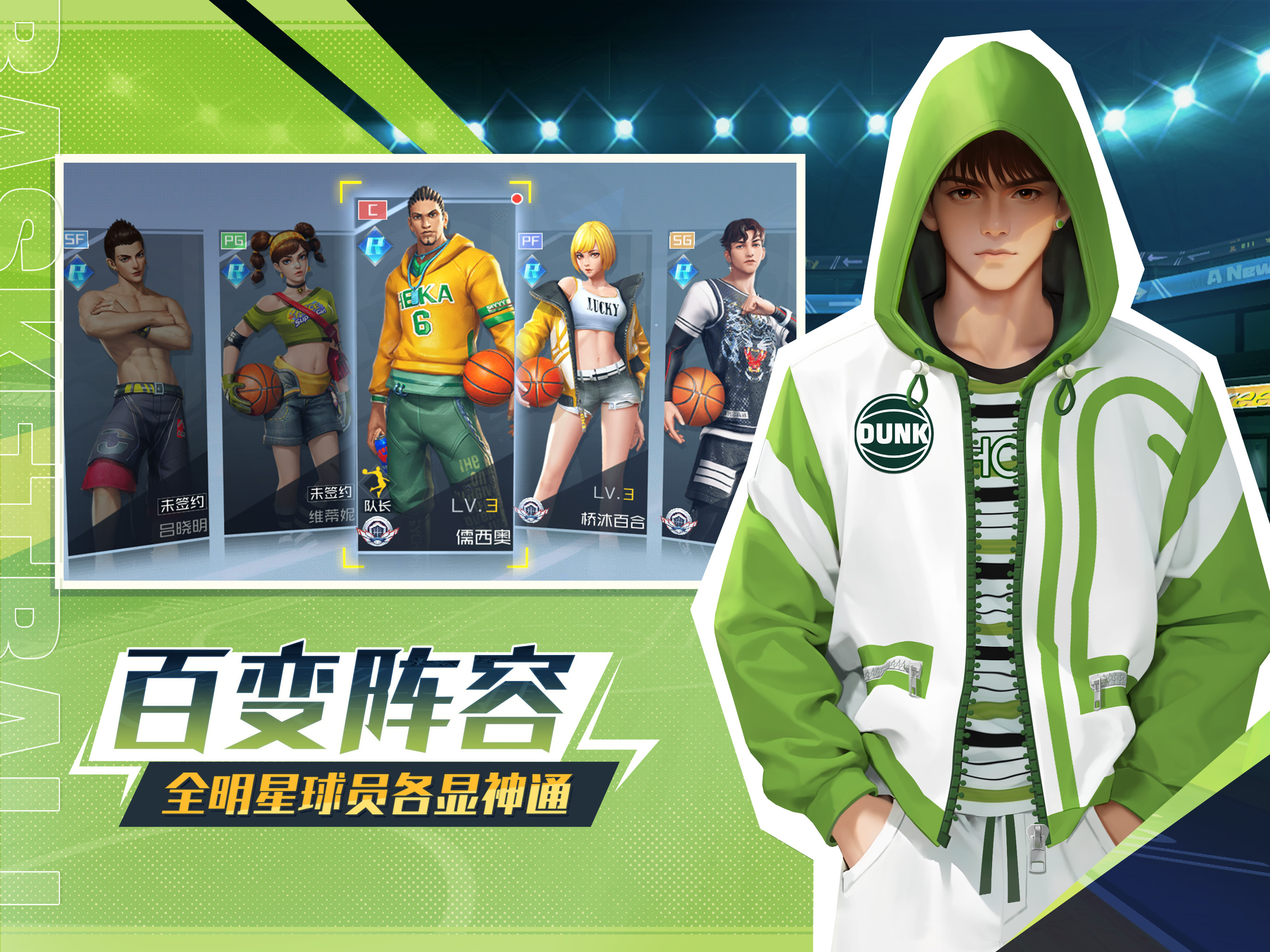 游戏特色: 百变阵容,个性球员各显神通 现超强球员阵容已加入《篮球超明星》豪华午餐!简、吕晓明、熙贞等经典球员助力登场,职业差异、球员间的优势互补更加突出,即便同职业的球员能力也各具特色,由此衍生出多样化战术打法,等你来挖掘! 竞技为魂,随时battle一战封神 你是街球王者?那就用实力来证...