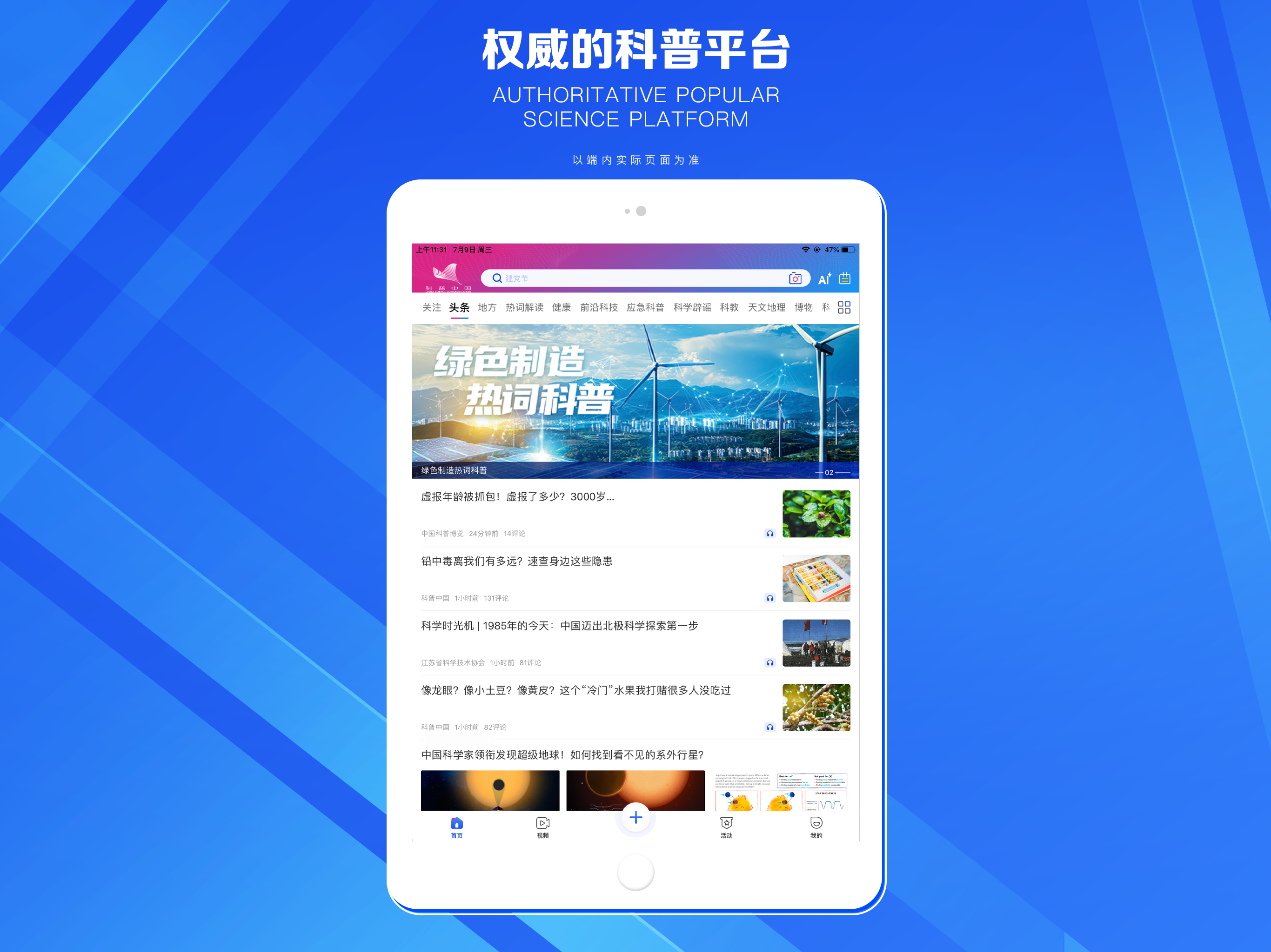 科普中国客户端是中国科协打造的官方移动客户端,也是国家级的权威科普平台。旨在让科技知识在网上和生活中流行。 1、24小时随时随地获取最新科普资讯。 2、一键参与、分享最热门科普活动。 3、汇聚海量视听内容,全方位满足个性化浏览需求。 4、加入科普中国信息员社区,打造专属于你的科普“朋友圈”。