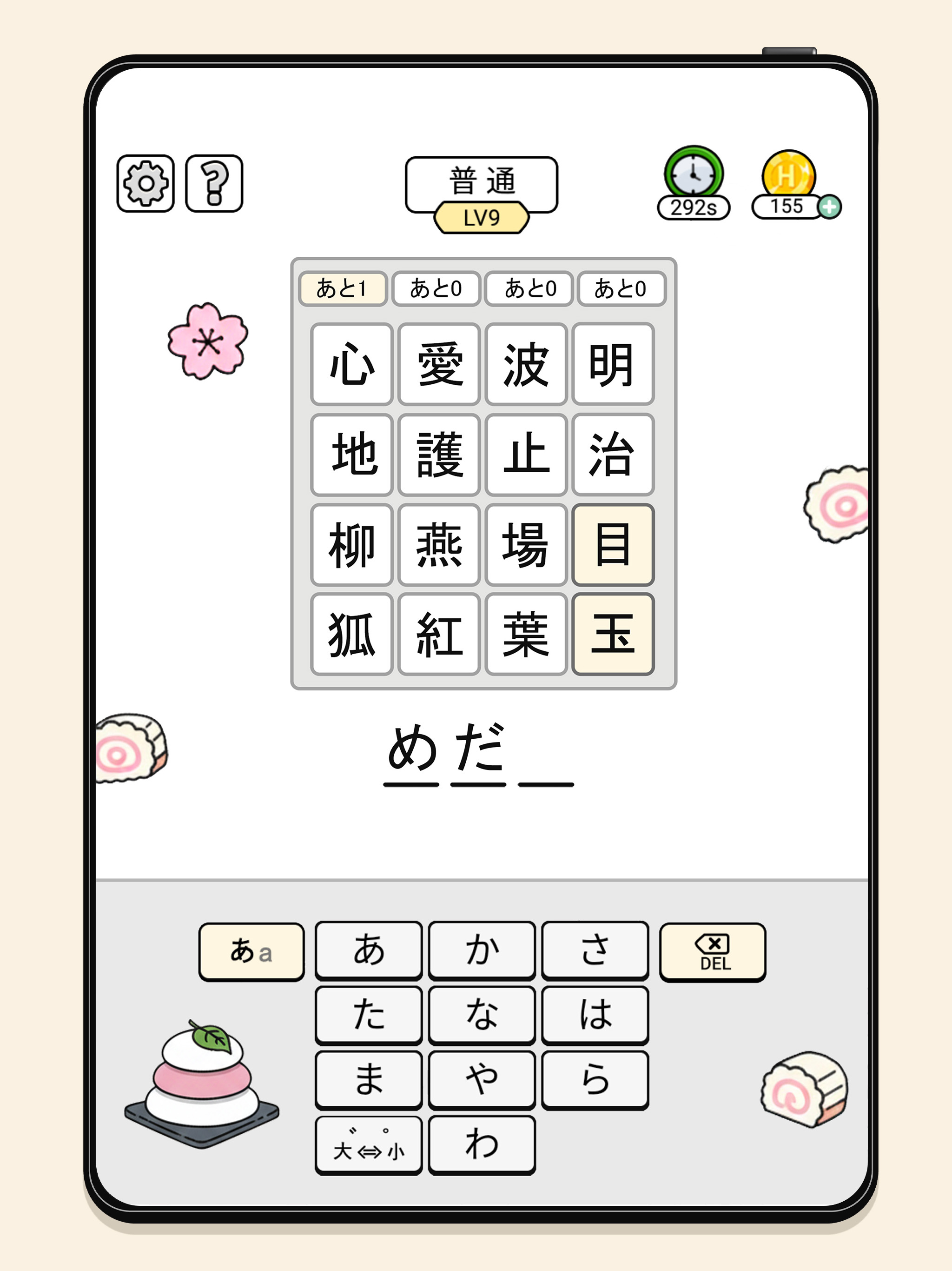 今年念頭に、何かに挑戦しようと決めて、漢字検定をうけることにしました。 ユーキャンの漢字検定コースに申し込み、勉強中。 ある程度は知ってるつもりでしたが、間違って書いてた漢字も有り今更に再認識したところでした。 そんな時にこのゲームに会いました。 楽しいのと、更なる漢字の確認できてはまりそうです。