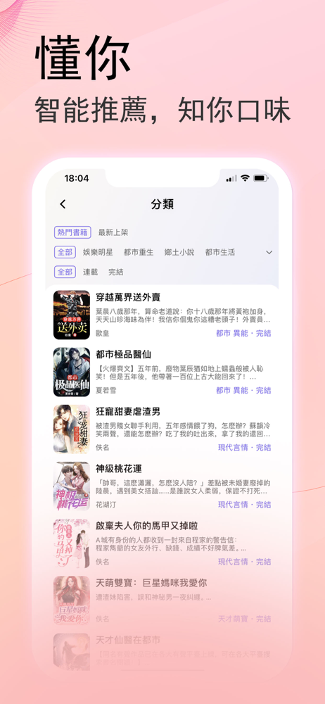 ※新增訂閱功能,看書盡享折扣福利哦! 【閱讀神器】 超貼心的護眼模式,可以個性化定製你的界面文字大小&亮度! 每日登錄簽到,免費送禮券去看心儀的書籍/短劇! 折扣來啦!購買訂閱包看書觀享折扣福利哦! 【種類齊全】 超多正版人氣網路小說,持續更新書庫,涵蓋分類: 都會言情、霸道總裁、玄幻修仙、穿越...