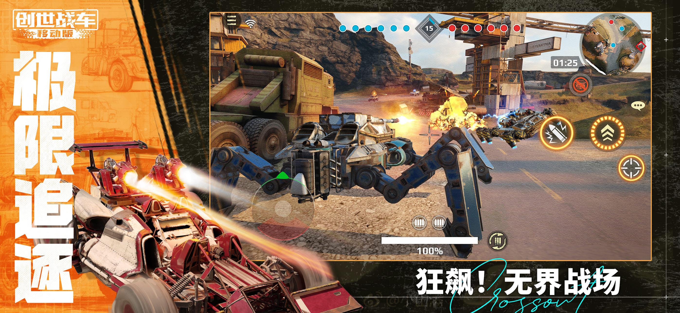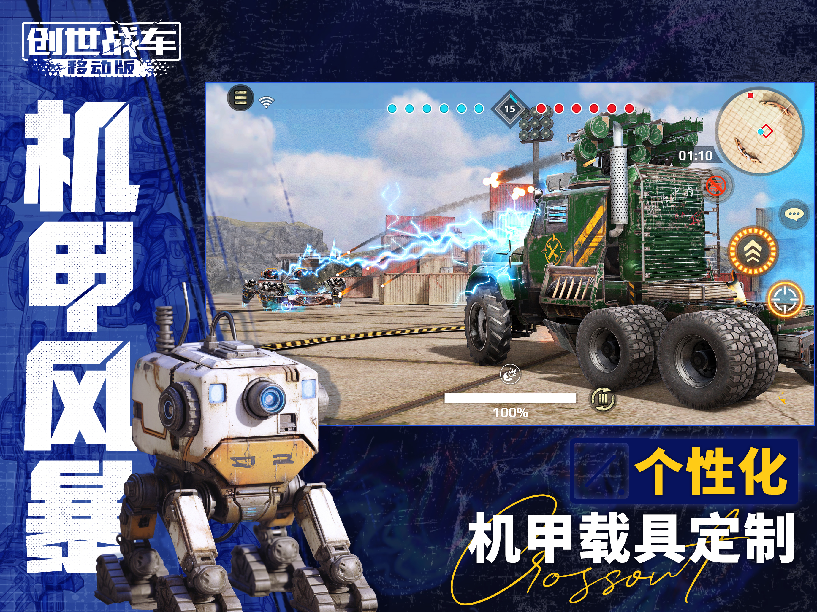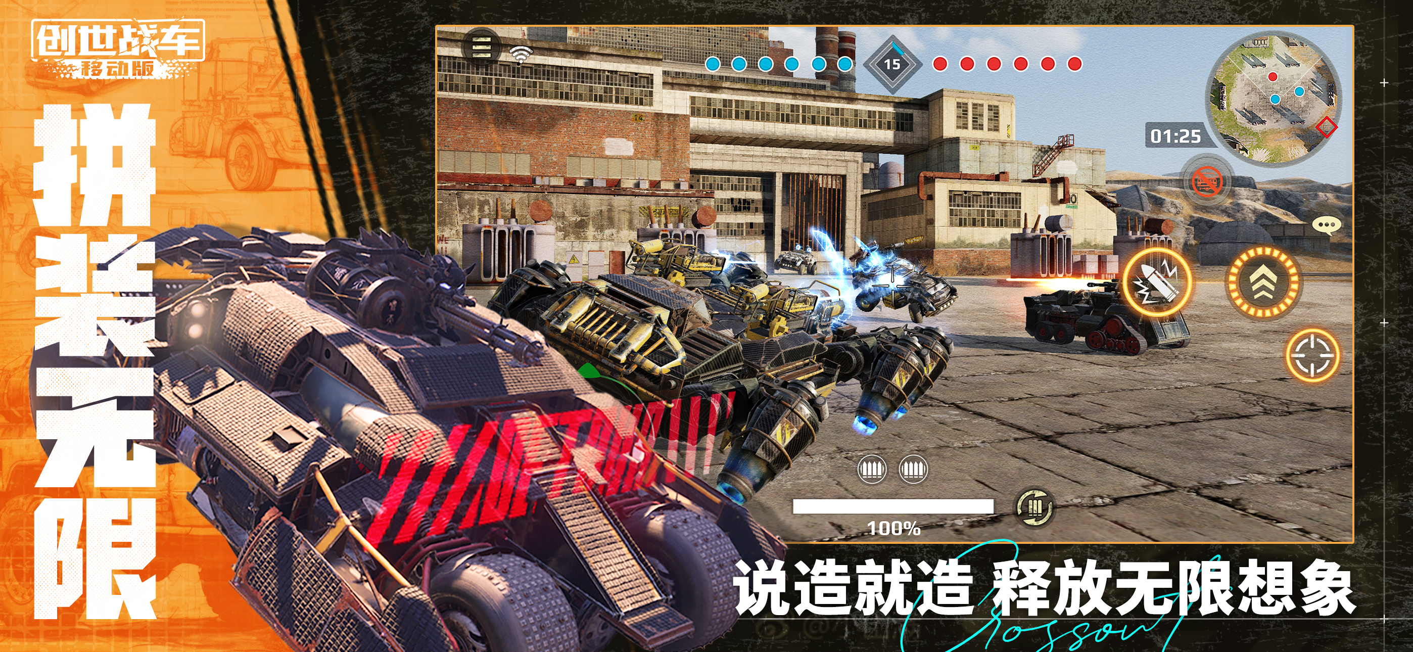 《创世战车》作为一款融合了第三人称射击、沙盒创造和竞技元素于一体的开放式沙盒载具竞技手游,玩家在游戏中可利用的模组多达500余件,涵盖远程火炮、近战武器、轻型机枪等数百万组合方案,满足您丰富的设计想象。此外,游戏将沙盒创造与激烈的第三人称射击对抗完美融为一体,让每位玩家通过操控专属载具,参与冲锋竞技...