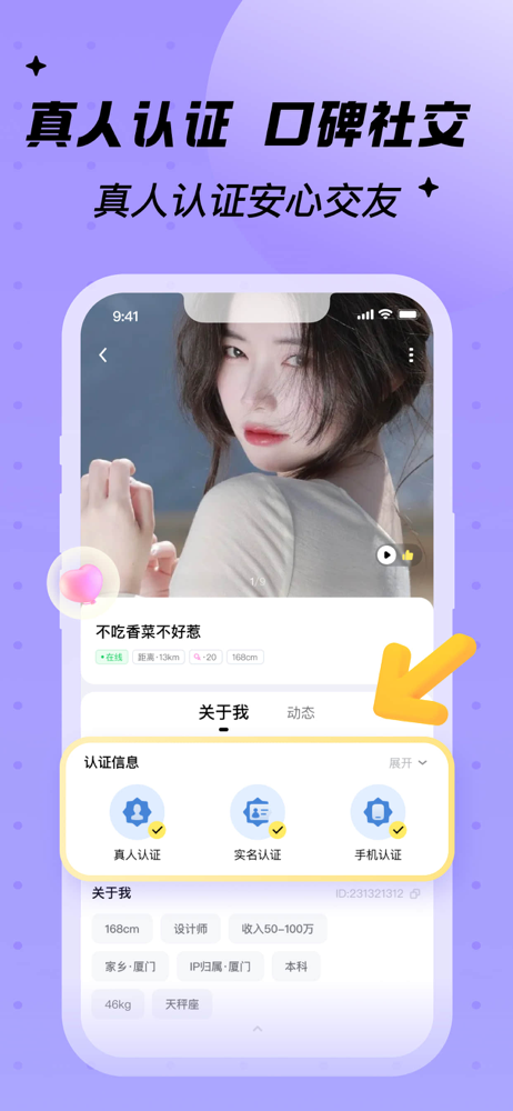 觅友—同城品质交友APP。在这里,聊天不只是情感的传递,更是寻找生活精彩的方式。 【心动在线】海量优质异性在线,真人在线聊天秒回。 【附近推荐】优先推荐附近高品质、高颜值用户,喜欢TA就直接开聊。 【真人认证】拒绝照骗和不真诚行为,资料人工审核,保障交友安全。 【联系我们】打开觅友APP-消息-觅...