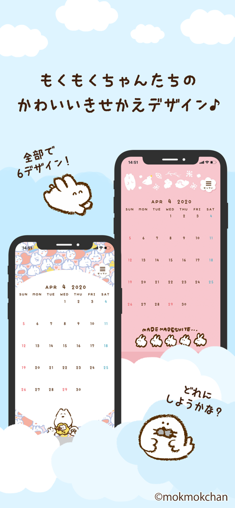 やさしい世界観で大人気の【もくもくちゃん】のカレンダーアプリです。 簡単で使いやすい操作性で、誰でもスムーズに予定を管理できます! かわいいキャラクターたちに癒される毎日を。 ●デザイン着せ替え機能 ・アプリの外観を、6種類のデザインテーマから選ぶことができます。 ・ホーム画面に表示するアイコンを...
