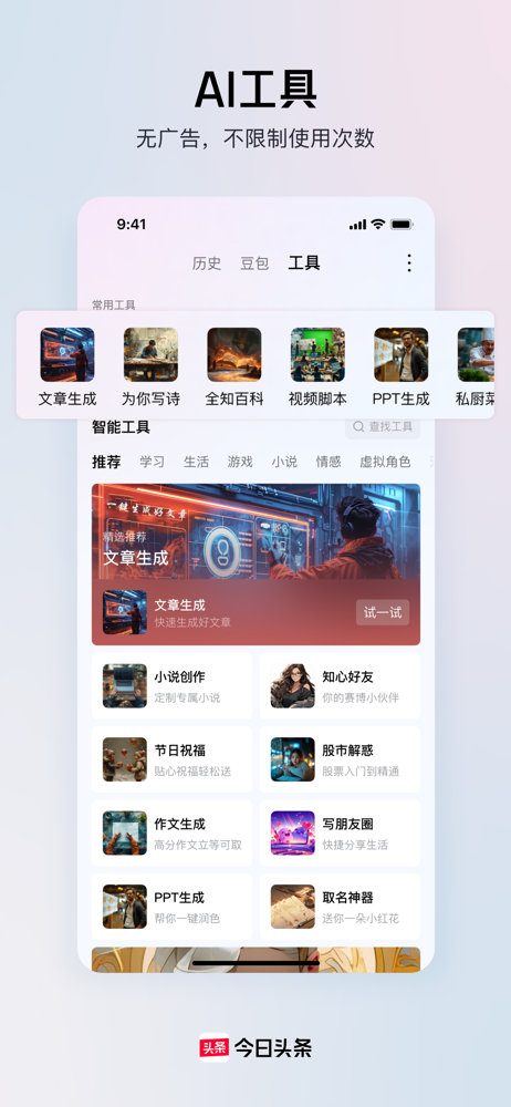 今日头条,官方推荐精品应用,单用户使用时长超过76分钟 近亿网友与你一起在头条! 热点资讯应有尽有 — 智能算法推荐你感兴趣的信息、无数明星大V在这里跟你互动; 人人都是原创作者 — 发布自己的微头条、与千万网友在问答区参与热点讨论; 发现生活记录生活 — 有全网精彩无广告短视频,也有草根生活喊麦...