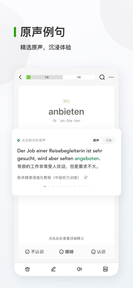 德语背单词是专为德语学习者设计的背单词软件。海量原声例句搭配艾宾浩斯记忆法,助你在了解单词真实语境的同时,科学高效的背单词。 【丰富词书】 涵盖当代大学德语、新求精德语等主流德语教材,专四、专八、德福、欧标等考试高频词汇,更有名人著作、动词变位等进阶课本供你挑选。你需要的德语词书,这里都有。 【...