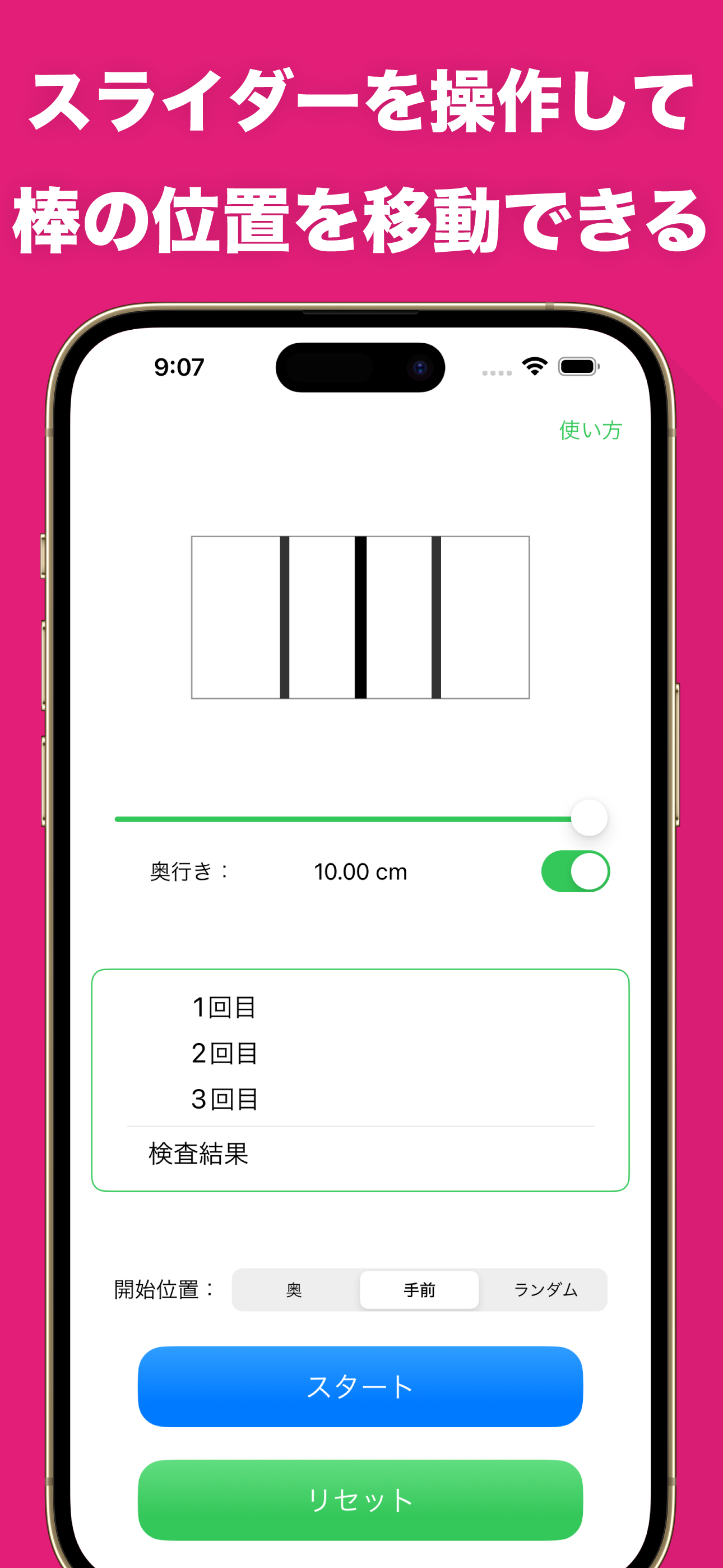 棒が行ったり来たりしない(片道で反対側に着いた時点で止まってしまう)のでスタートから揃うまでの時間で覚えてしまう。 せめてスピードを調整できたら…