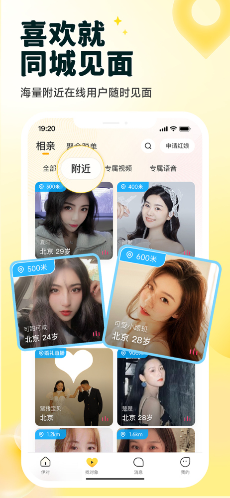 找对象,上伊对! 伊对,海量用户都在用,更真实的音视频恋爱社区! 伊对APP专注于移动端交友,将音视频、直播和线上主持人创造性地融合在一起,开辟了音视频社交的独立赛道。活跃线上主持人4万多人,每月主持线上交友活动约1000万场,为用户提供了全新的社交体验。 功能介绍: 【海量推荐】海量用户都在等你...