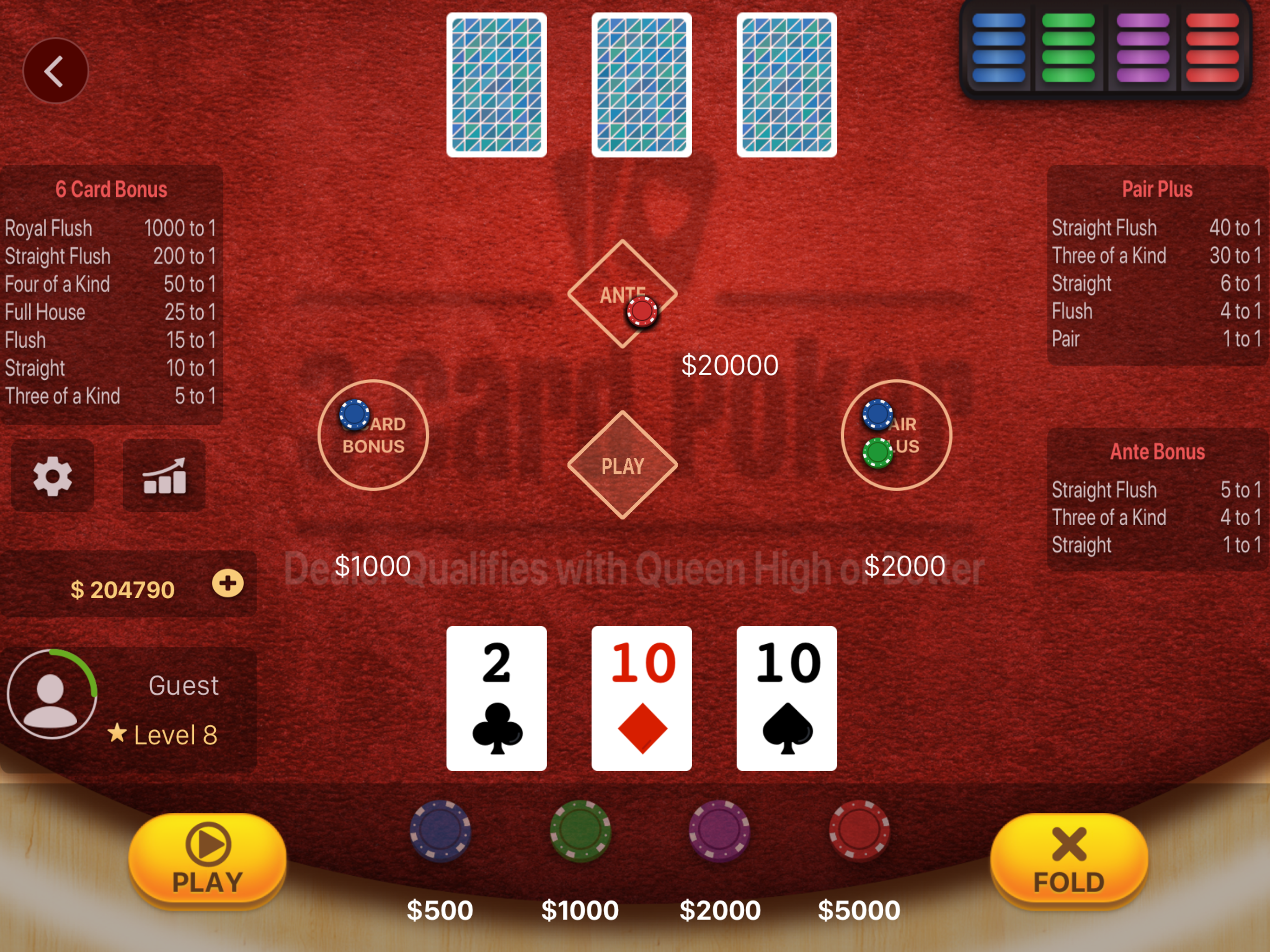 Three Card Poker is a popular card Poker variant played in real Casino. This is an online casino game of 3 Card Poker for iPhone and iPad! 3 Card P...
