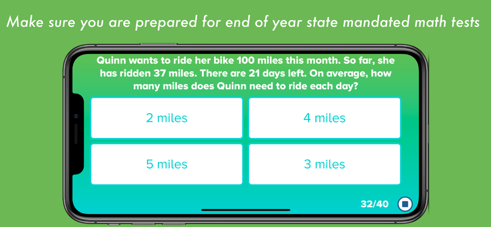 How do you know if your child is prepared for the state mandated math test? This app helps to assess if you're ready for the end of 8th grade tests....