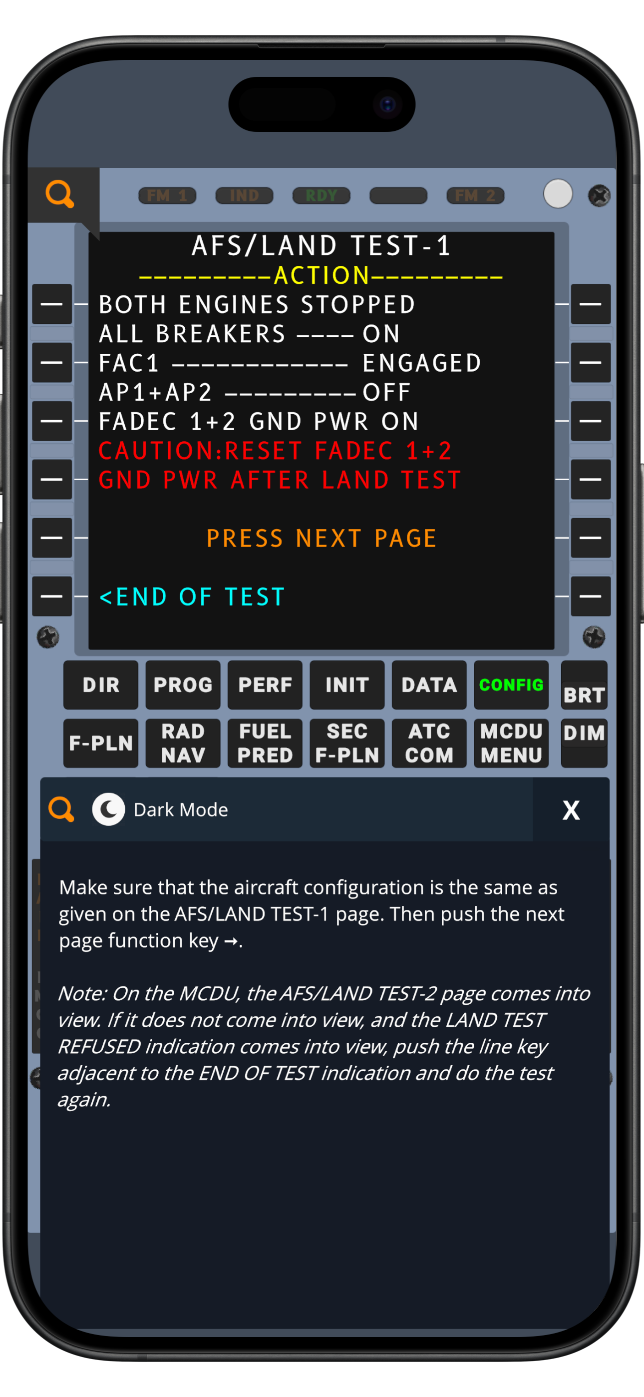 A great resource for review of input screens underlying the MCDU buttons. However, this is not an MCDU simulator for flight programming. Itโ€™s designed for technicians and training on the features of the MCDU MENU.