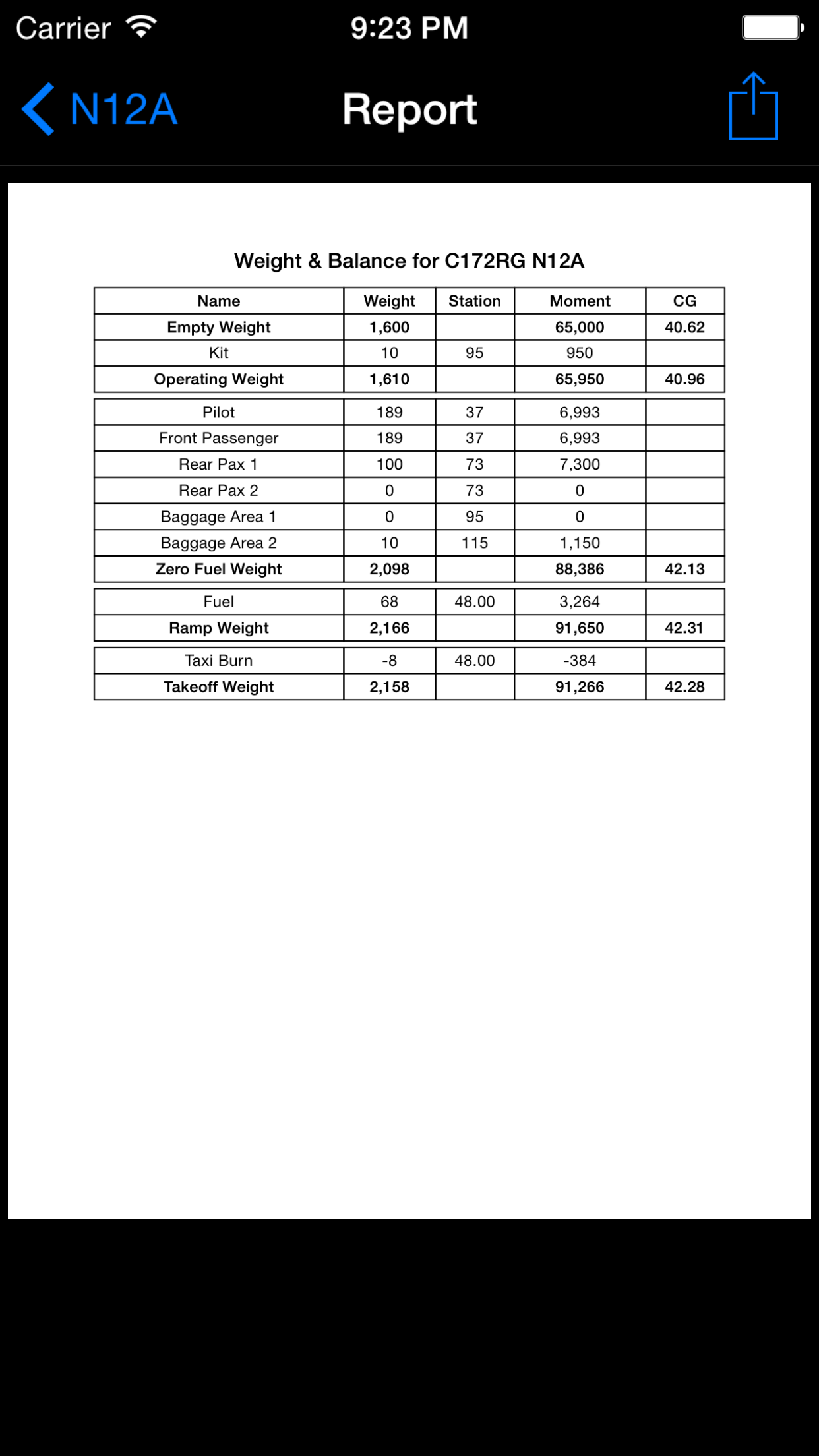 I was able to setup my aircraft W&B in about 5-10 minutes and see a typical CG output for my normal flight load. Nice job. I didn't realize that you have to pay to see the graph and report; not a big deal as I don't need to see the graph or report for the app to compute the CG. Highly recommend for anyone needing a quick and dirty CG check.