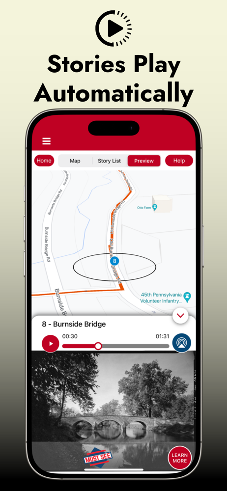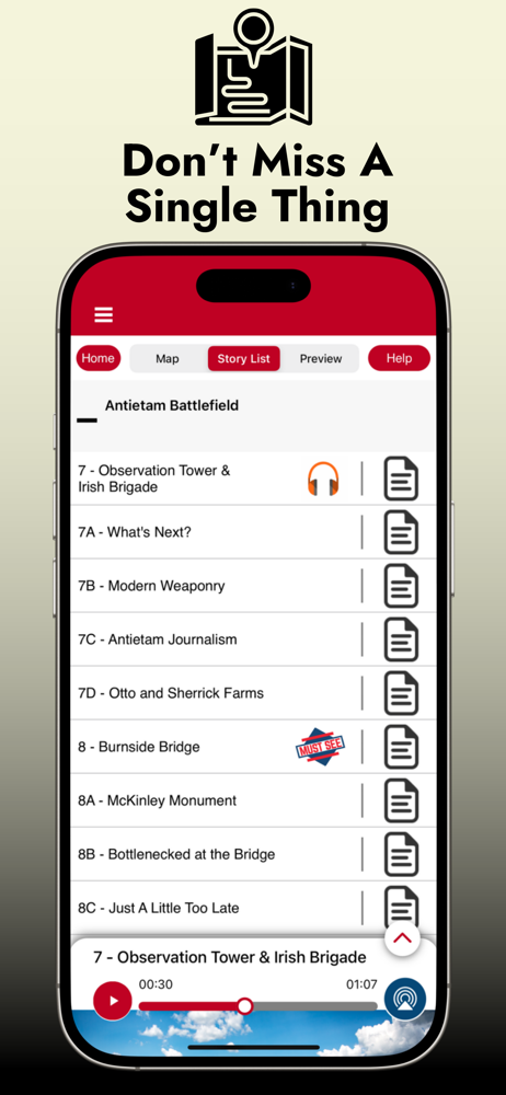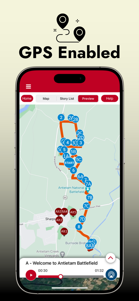 Used this app for a driving tour of Antietam. It worked great! Was easy to navigate as a passenger while my husband drove but would also be pretty easy to use as a sole driver because the audio starts on its own based on GPS location (you do need to make sure to go slow enough so it doesn’t start the next one before you finish the previous one). Alternatively you can look ahead and start audio for the next stop before you pull out of the parking spot at each stop. Was great info and followed the NPS (well-marked) driving tour. Used their app for Boston Freedom Trail walking tour too and loved it!