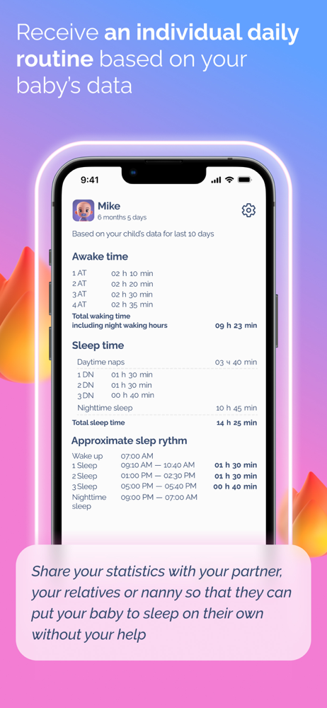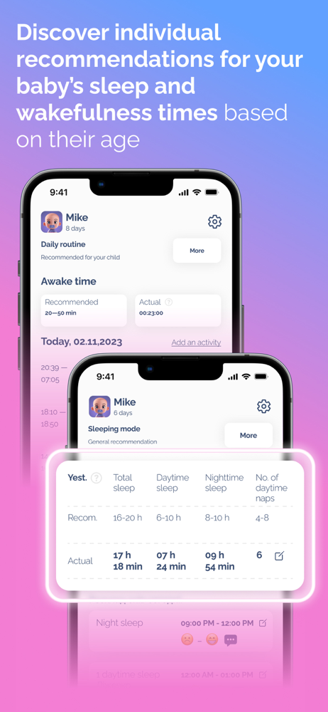 This app is an absolute lifesaver for me! The notifications reminding me when it's time to put my baby to sleep have become my reliable helper. Now, as soon as I receive a notification, I immediately go and put my baby to sleep, and they fall asleep instantly. No more endless struggles with sleep and constant rocking! Thanks to this app, we have established a wonderful sleep routine, and I couldn't be happier.