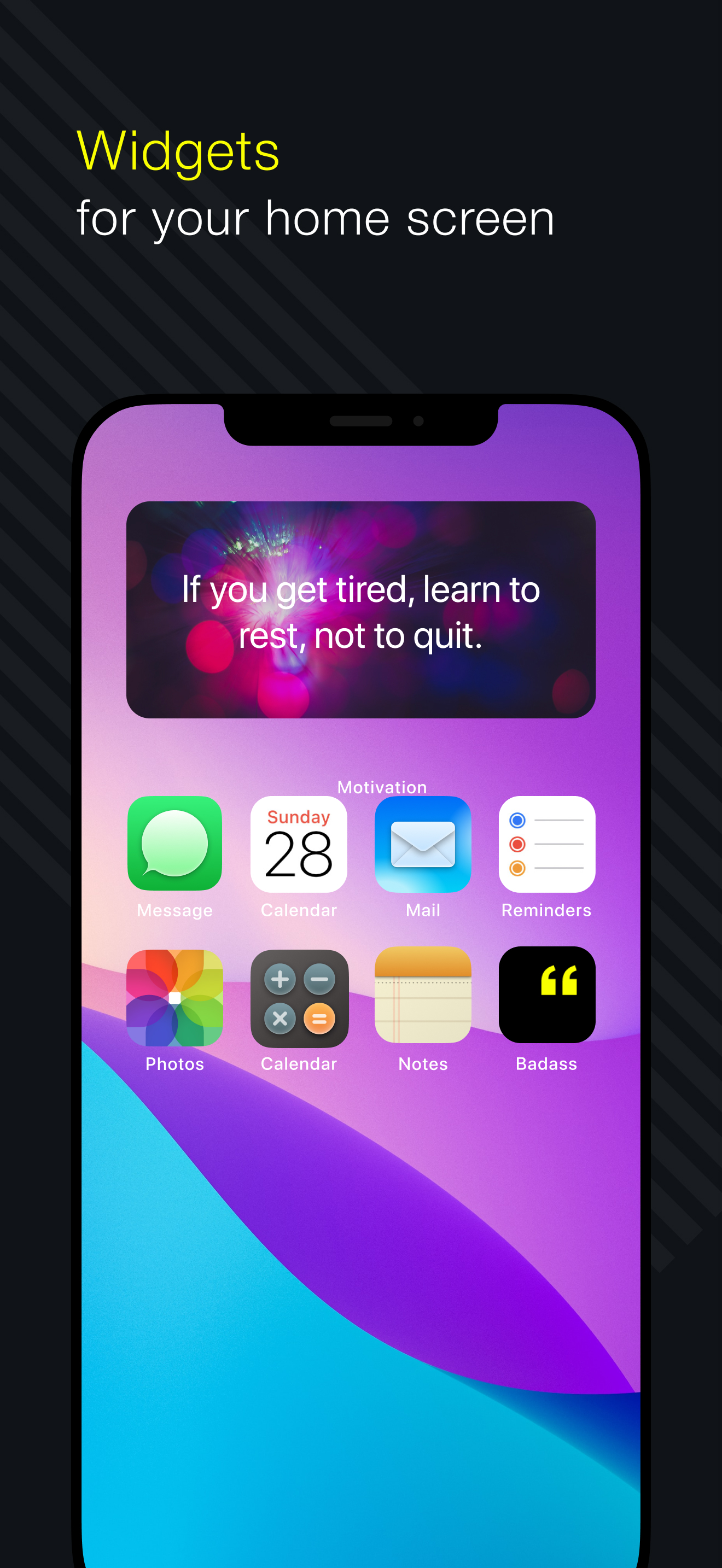 This wallpaper app has bee a great part of my personal journey. Each day I select a phrase that not only resonates but is a constant reminder the lesson I need to learn. Brilliant. I like the pop is too. And itโs easy to slide right to another without going to setting. Thank you!!!!!!