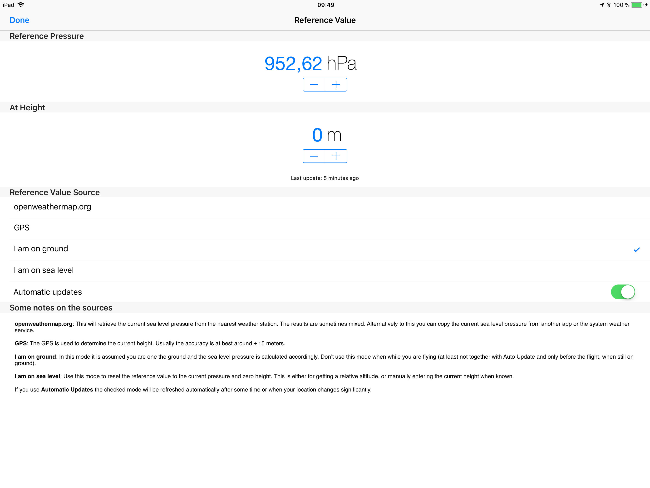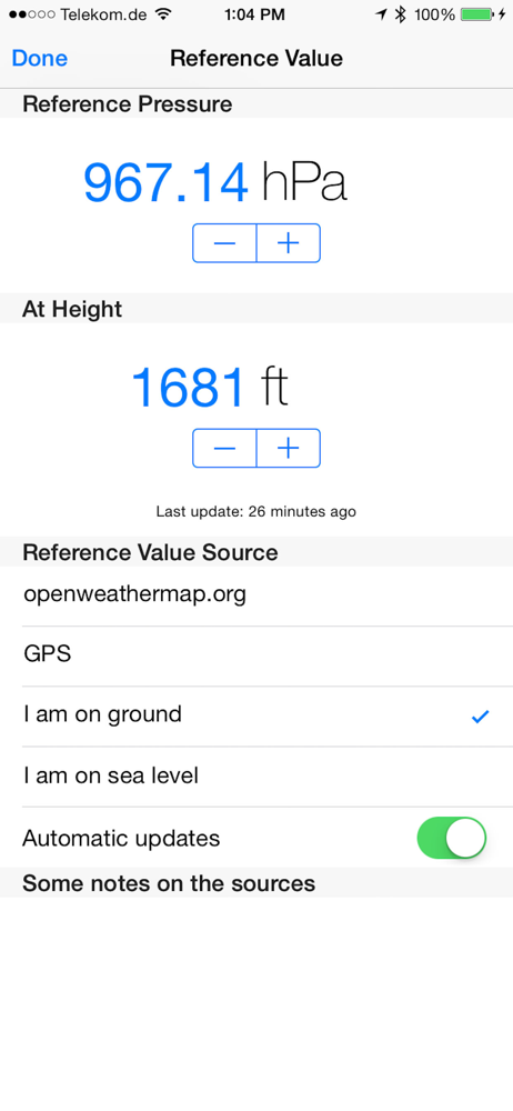 I loved this app because I can adjust the sensor to atmosphere. I work for a calibration lab company & I adjust this app to the readings from a more accurate pressure standard.