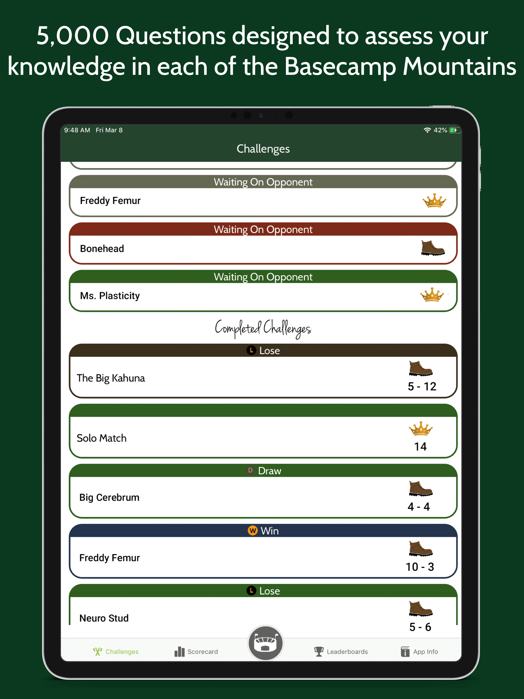 This app is helpful in providing useful and helpful questions as they apply to the NPTE. However, if I paid for Basecamp I should not get ads for your products after missing a question. It is super distracting and honestly really annoying to see. Put it in a separate tab on the app if you want to market more of your products. The questions get repetitive and took me maybe 10 minutes to see repeating questions. When you get an answer right or wrong it only gives you the answer for why the answer is right, but does not say what the wrong answer would be related to. An example being if the question asks about what structure in the muscle monitors muscle tension, it will tell you about GTO but doesn’t say what Muscle Spindle monitors. Definitely should look into restructuring the way answers are given as well as removing ads for those who already paid for basecamp.
