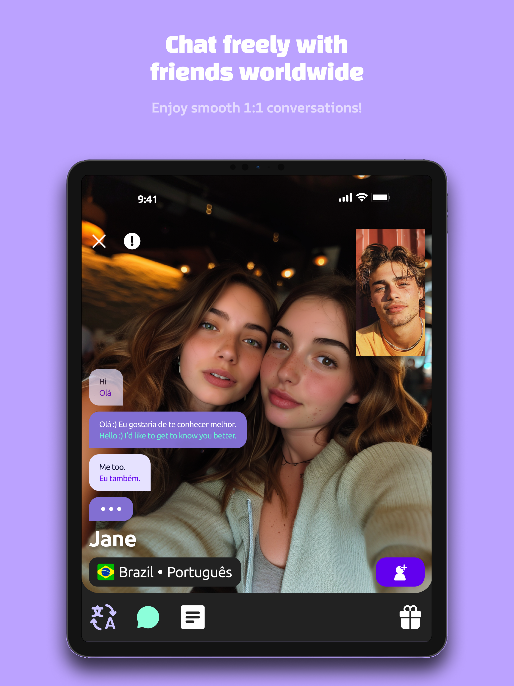 Join video calls with various people from different cultures. [Key Features] - Meet new people through live video calls! - No language barrier. Text...