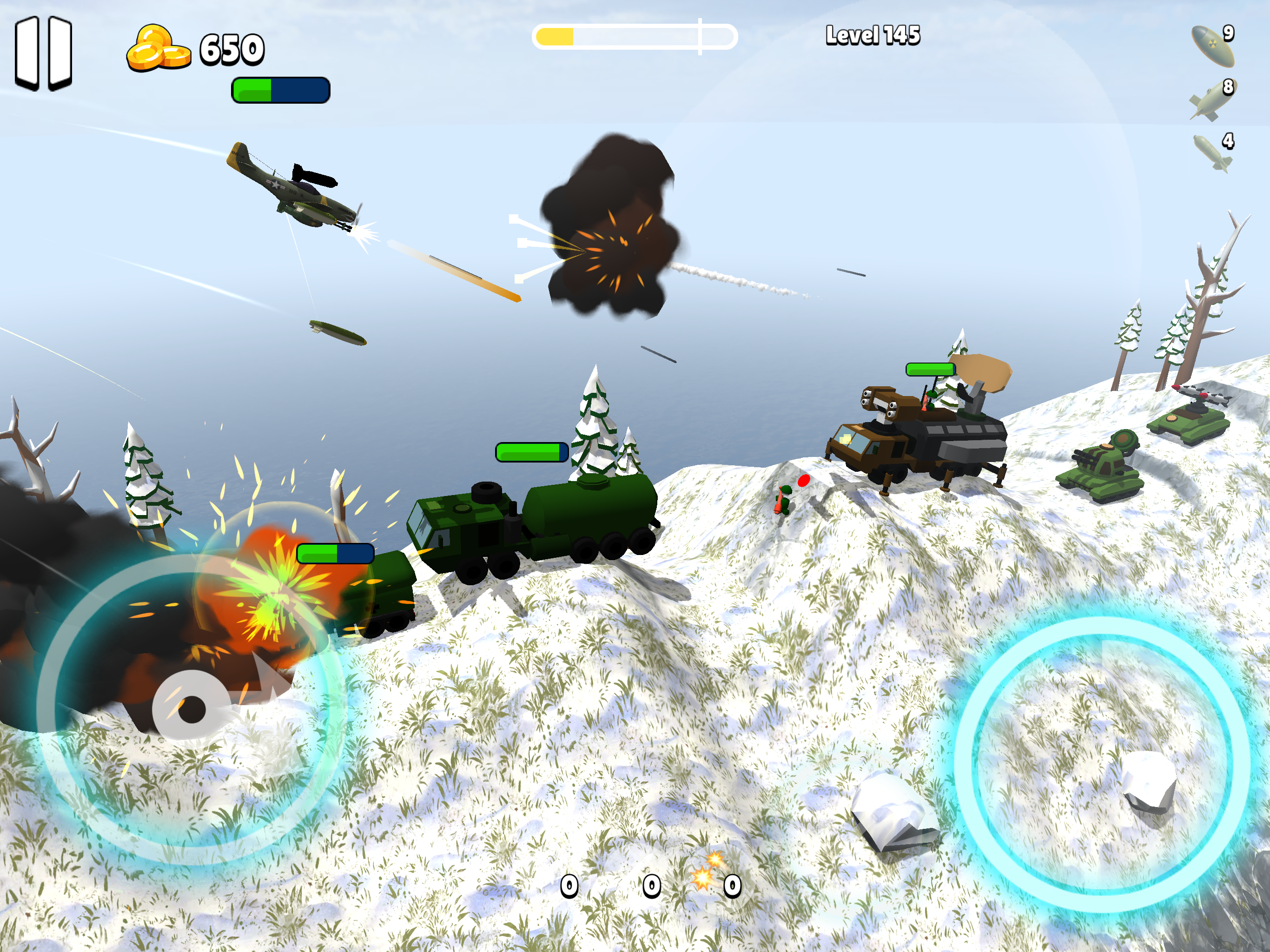 I’ve been playing this game since release and it’s by far one of the best mobile games I’ve played. However some things I have issues with is the lack of gem opportunities before the latest update with the missions I was able to purchase both the cluster bomb as well as the p51 by grinding to level 370. My issue now is that the levels are a lot longer and you still receive the same 3 gems. Right now at best I receive two with every level having a random enemy despawn or dissapear making it impossible to 100% the level. I really love this game and will continue to play however having a gem reward increase with maybe every 100 levels receiving 5 gems per level after 100 levels completed and so on. Also making the missions a daily renewal type deal and lowering the gem reward for the missions. I look forward to seeing how far this game goes. One other thing I would like to see is the original camera style being brought back as an option. Thank you very much for the enjoyment.