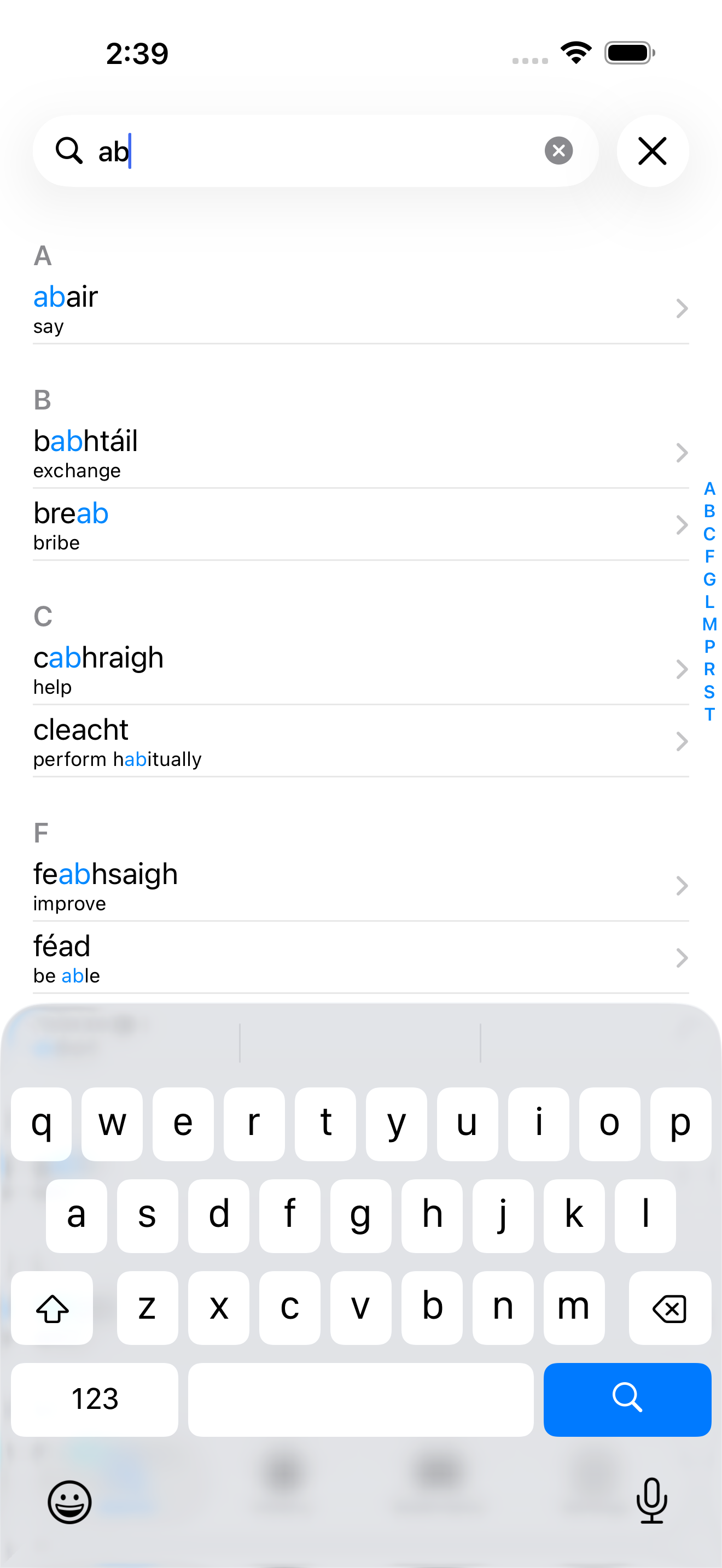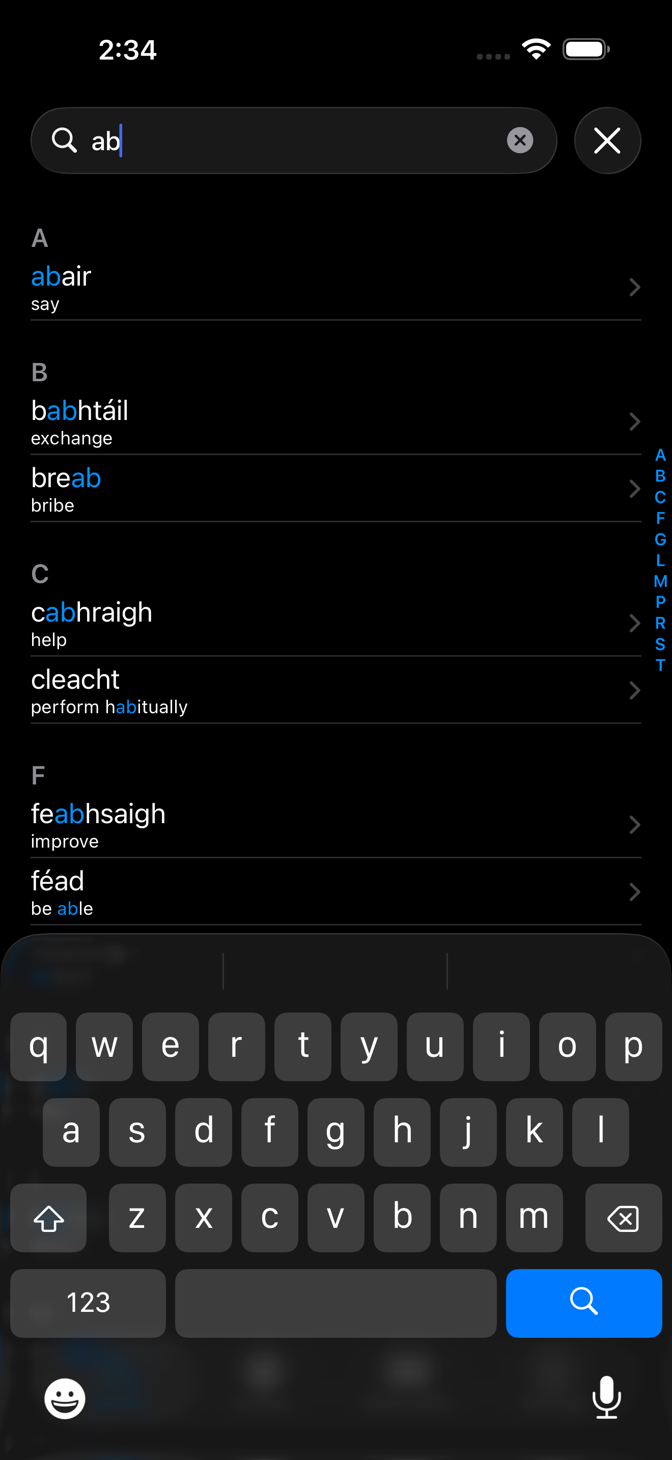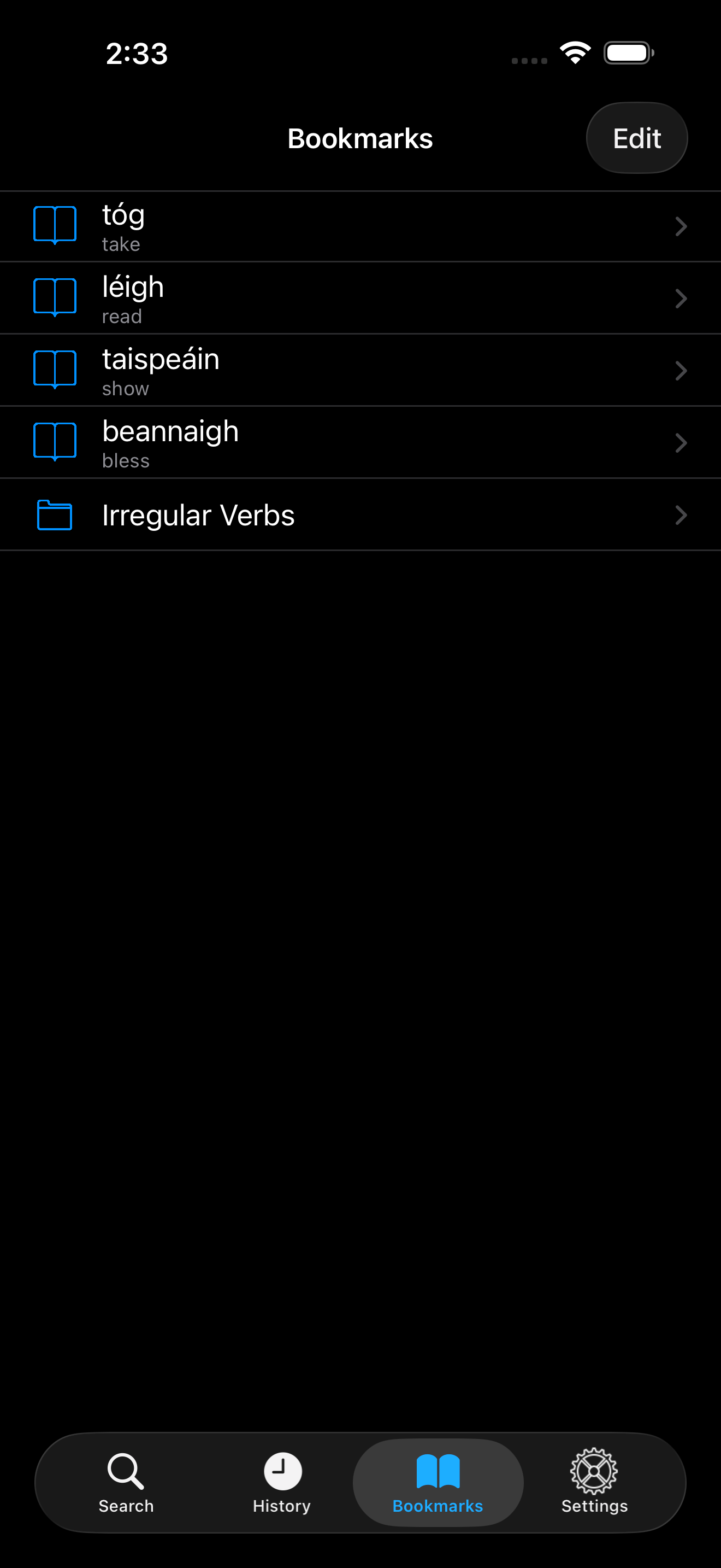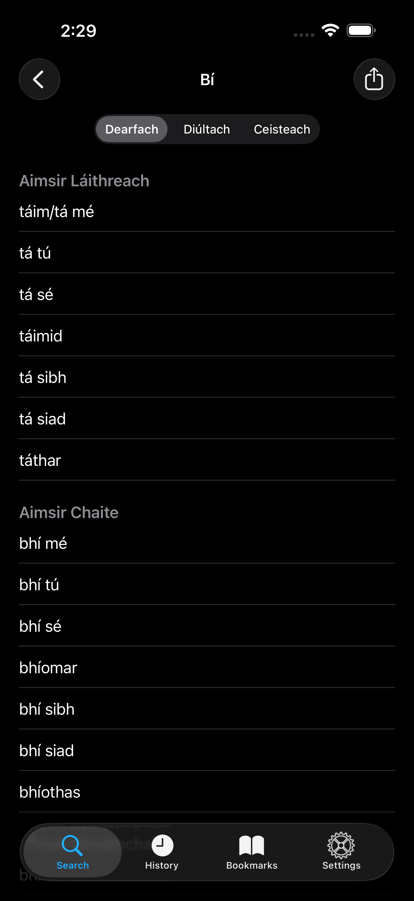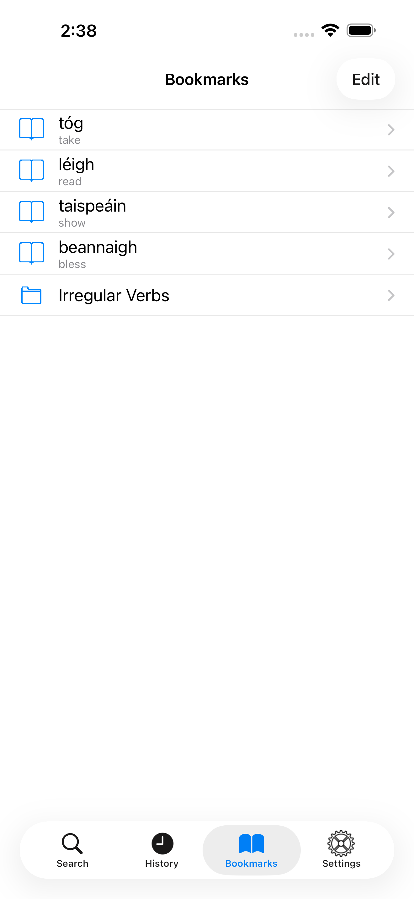 This is a brilliant app. I wish the conjugations were sounded out by a human being, but I am thankful for the effort made to keep the Irish language alive.