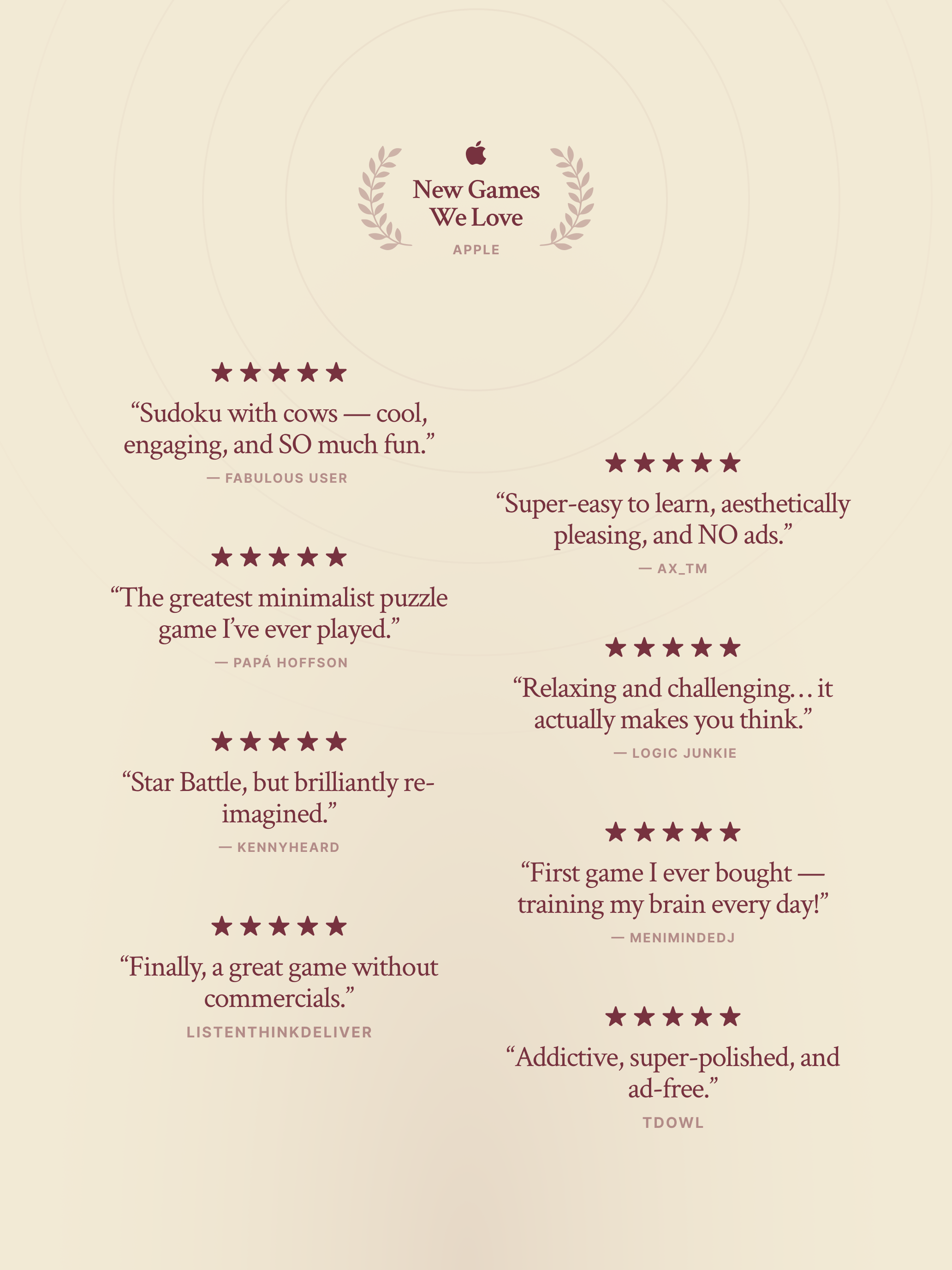Fantastic little puzzle game, looks good and playing it - the controls, the feedback - just feels responsive and satisfying. Plus the number of levels is enormous. In terms of puzzle games, it’s somewhat similar to sudoku. Would be nice if there was an option to turn off hint reminders, though. Or to hide the timer.