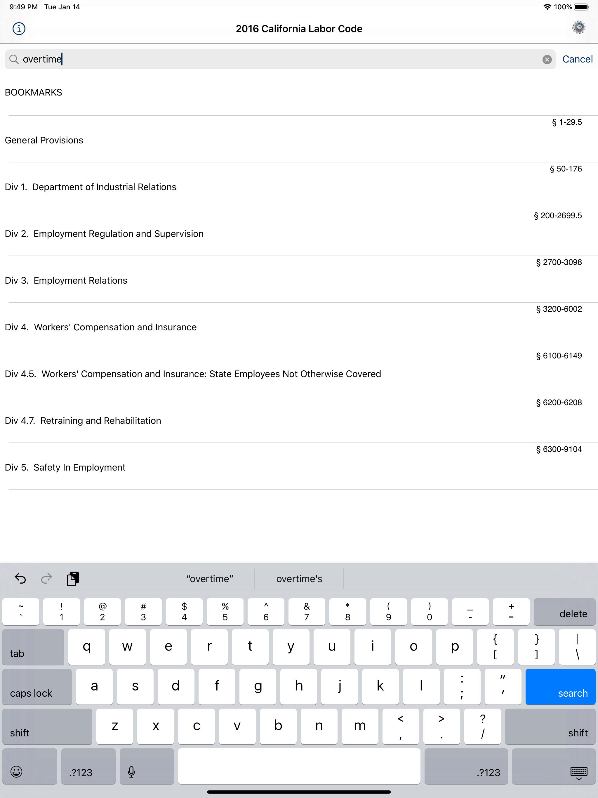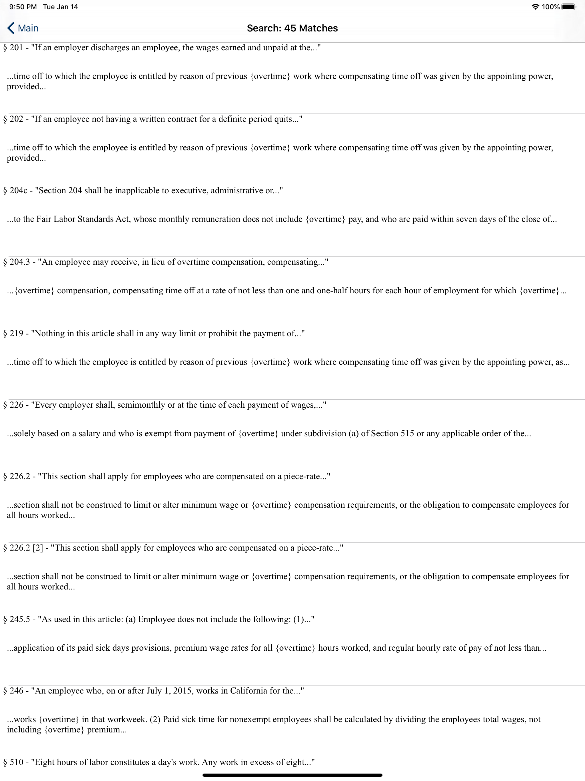Very useful to have the Labor Code on your smart phone. At the WCAB and can't think of that LC section number you need? Do a keyword search with this App and find it in seconds. Or, if you do know the section number, punch it in and retrieve it in seconds, along with references to it in other sections. Well worth the 6 bucks.