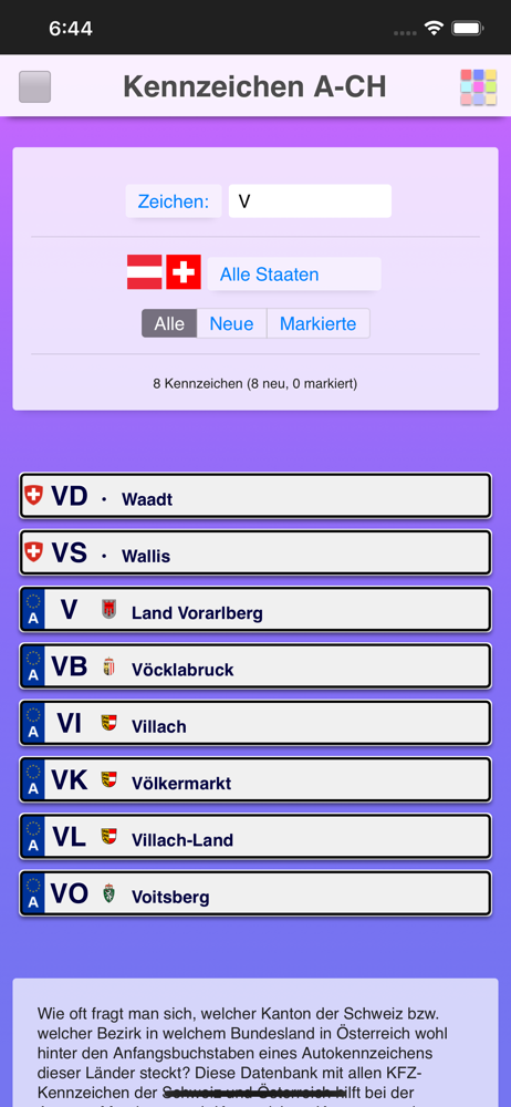 Don't travel to Austria or Switzerland without this database of the license plate signs of both countries. The letter code denotes the different regio...