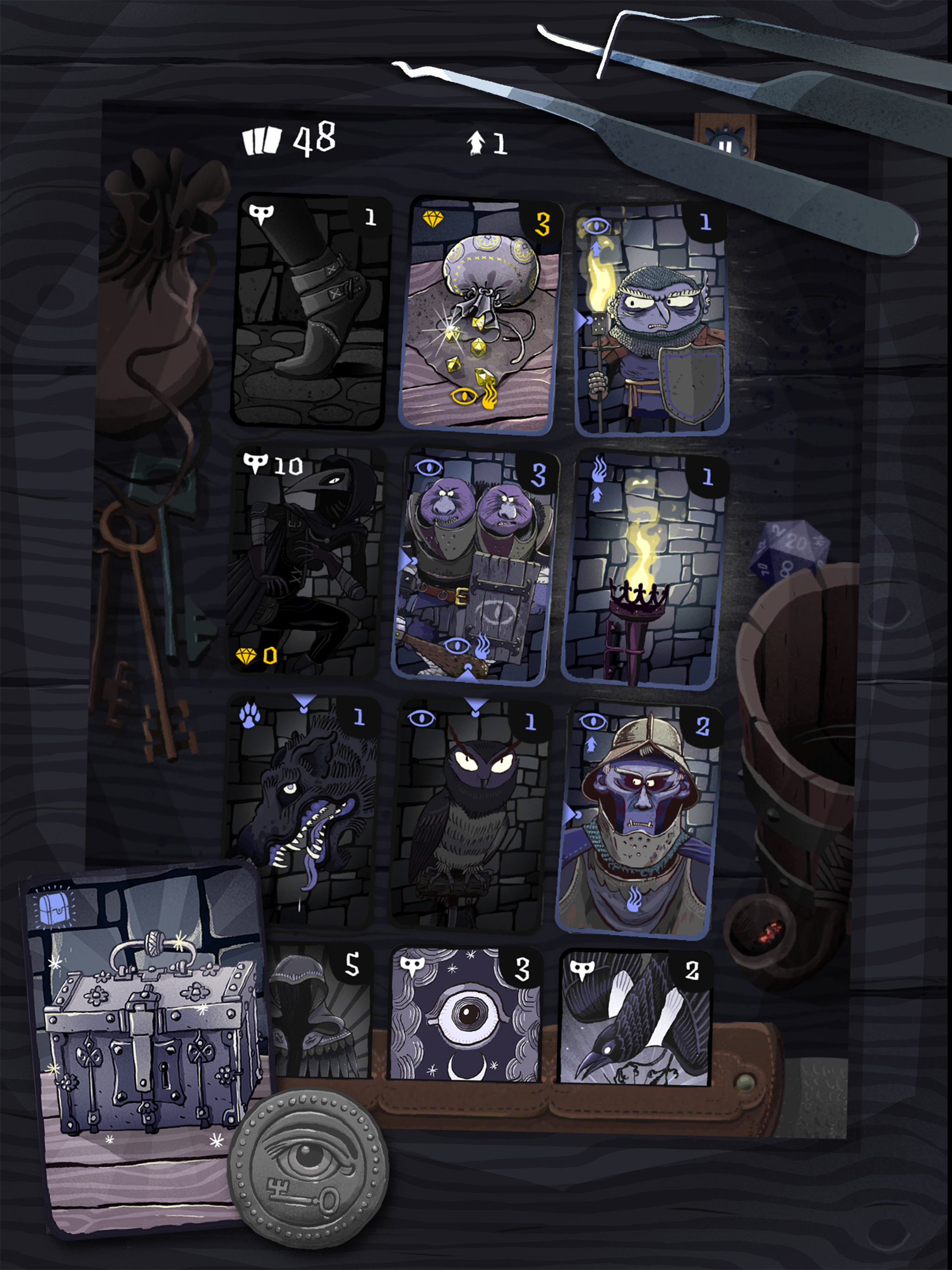 I really love this gameโ & I want more! more levels, more incentives, more variations in the Hideout games. There is so much potential for expanding on this game. The gameplay itself is so enjoyable and very tricky at times. I love puzzles and it really gets my gears turning on how to figure out the best strategy. There are tricks Iโve learned and some I havenโt quite figured out yet. Also, I love all of the artwork so much. Really, this game is great, very smartly done. A few small tweaks (e.g. no more triple-taps to open treasures, please) and some additional goals/achievements would breathe new life into this game. Like the inventory of stolen goodsโ it doesnโt appear to get you anything or unlock any achievements (yet?). Iโd like to be able to cash those in to get new tool cards, or win special cards if you get the final high score on a Hideout game, etc. I look forward to future updates! ๐๐