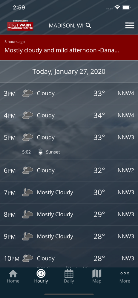Channel3000.com and WISC-TV3 deliver the latest weather and traffic for Madison, South Central Wisconsin and beyond. Access your First Alert forecas...