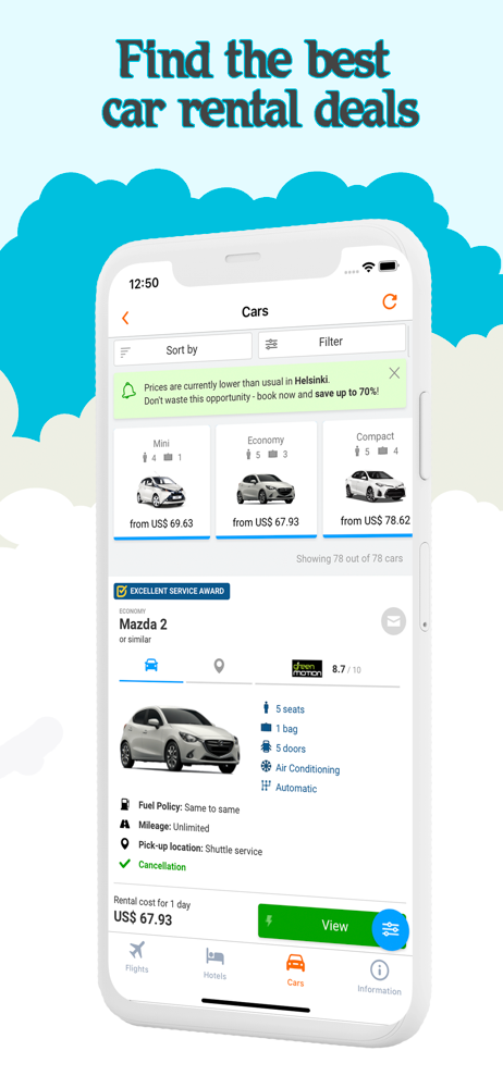 Looking for plane tickets? This app helps you quickly find and book the best travel options — air tickets, hotel deals, and car rentals — all in one s...