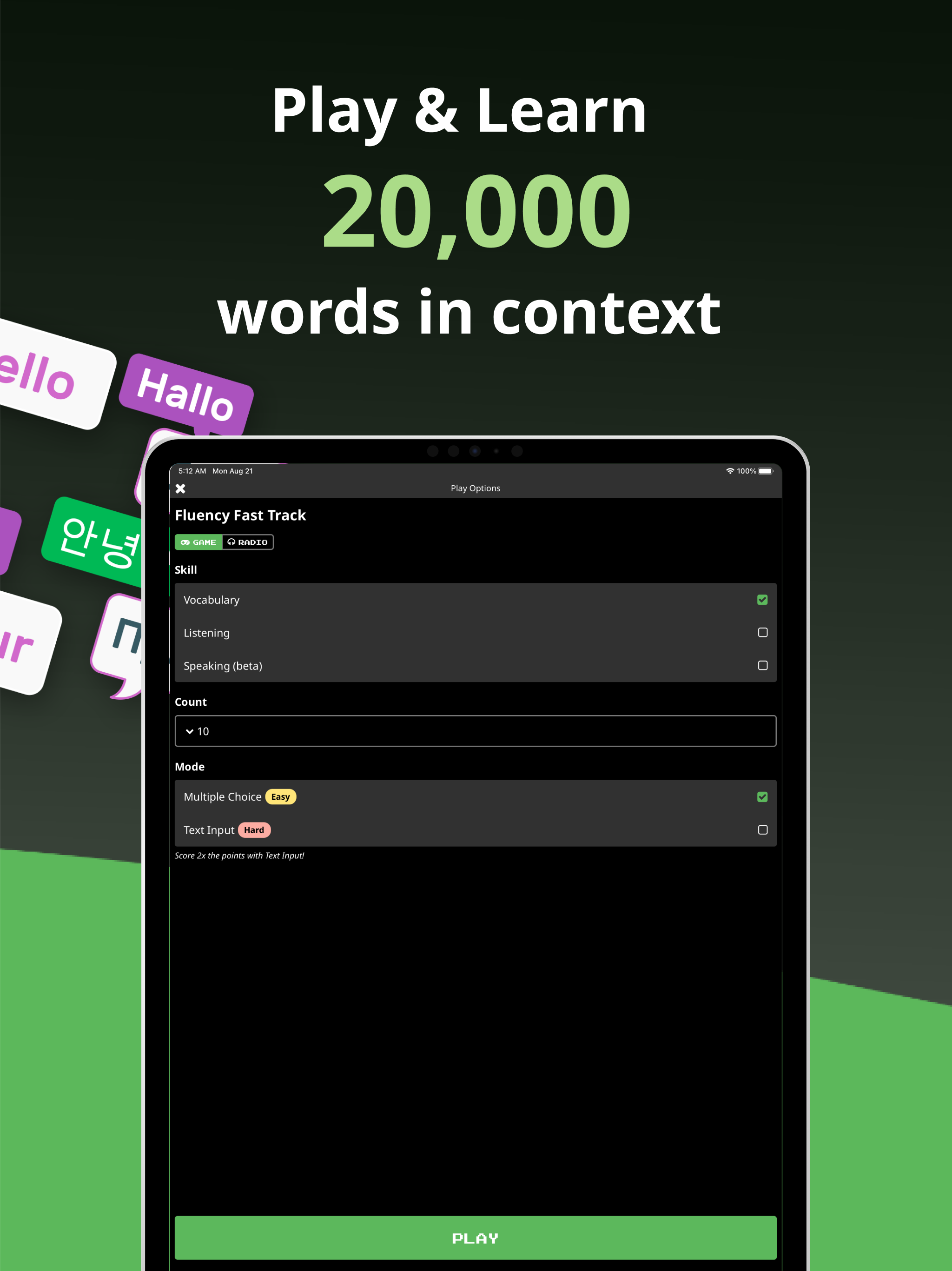 I love this App for so many reasons! I can put it on radio mode and just listen- it even has a timer so I can listen to it when I go to bed. The sentences are authentic- not like the silly sentences on Duolingo. It uploads fast, you can download and “play” without internet. It goes way beyond the basics of Duolingo and their customer service is wonderful. If I report a glitch or have a question, they get back to me right away. I’m studying Romanian from scratch and doing German but set my native language to Spanish so I can review Spanish while learning German. It’s a simple to use App that is very powerful. (My only wish is that they’d keep track of how many days I’ve practiced instead of a streak because if I miss a day, it starts over. Id like to know, for example, that I’ve done 45 days out of the last 50. Also, maybe have a way to “ make up” those days missed by practicing twice a day. I like to be held accountable. Thanks for making a fun and effective App for language learning.