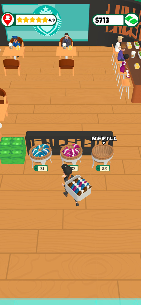 It’s a fun game. I like that you can unlock helpers relatively soon and you get a bonus as you level up your character. Downside is the helpers are a little glitchy. The stocker seems fine, but the server only carries one thing at a time and it’s rarely what a customer actually orders. There isn’t an option to upgrade them. Also, they want to try to play cashier but only take one order then run off. The cleaner picks up a single plate and decides to just hover over the trash can for the rest of their shift. And new levels or locations would be cool, there are only two.