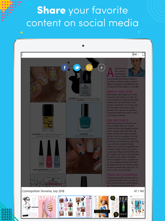 Cosmopolitan je revija za inteligentna, zabavna in neustrašna dekleta, ki od življenja pričakujejo veliko. Želijo biti urejena, slediti zadnjim modnim...