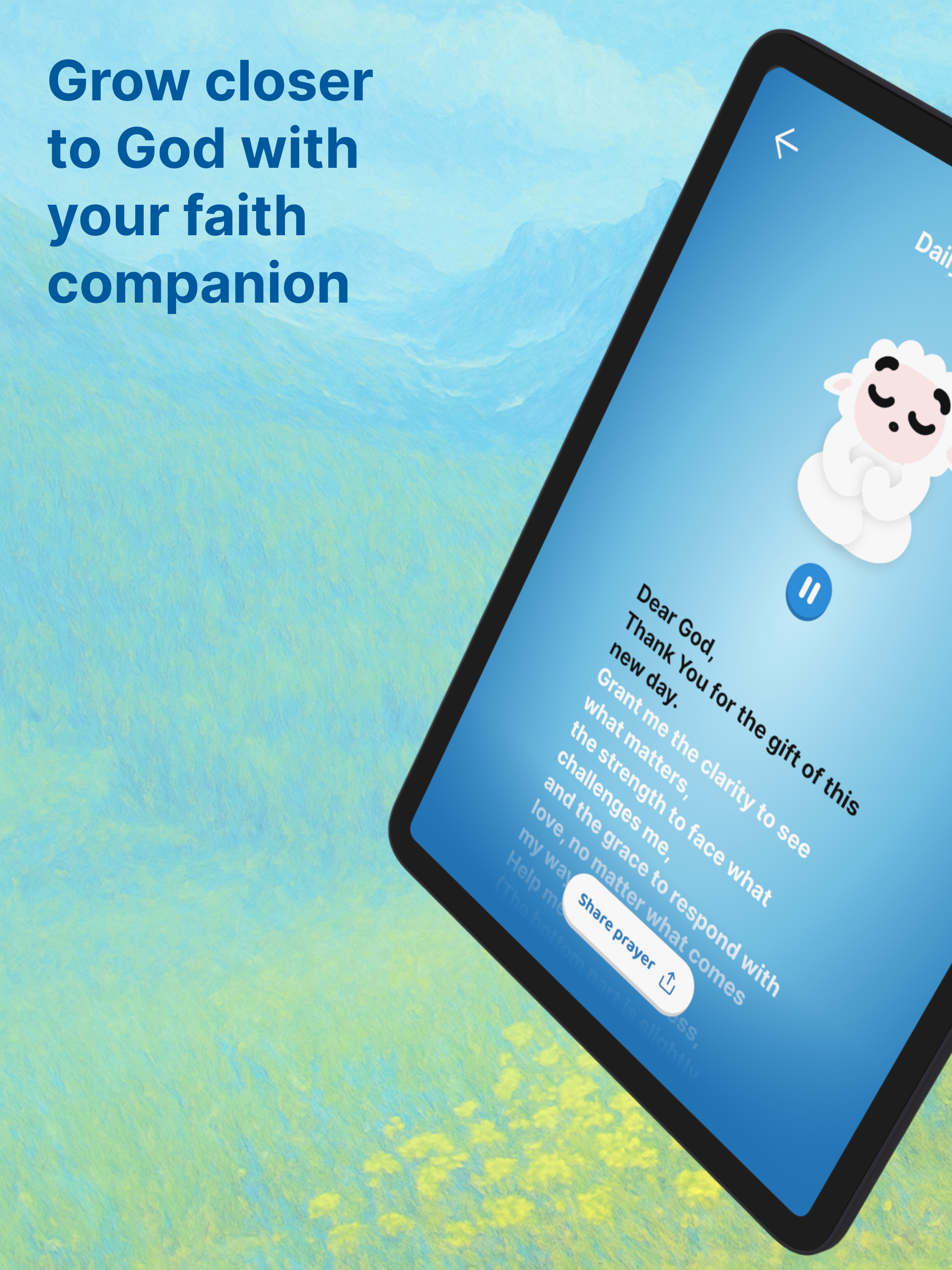 The experience of this app is almost one of a kind itโs on its way to be number one. Iโve had the privilege of downloading so many different apps that this weighs almost all of them given this little sheep, who is extraordinaire he navigates beautifully and interactively. I was going through a difficult night and I donโt know just a thought of maybe starting to talk to him to see what he can do and what an abundance of faith filled responses. Not only do I get to talk to God during our one-to-one, but seeing it in scripture form through this little sheep, allow a gateway of bible verses to comfort me so this little sheep conversation late night is what I needed