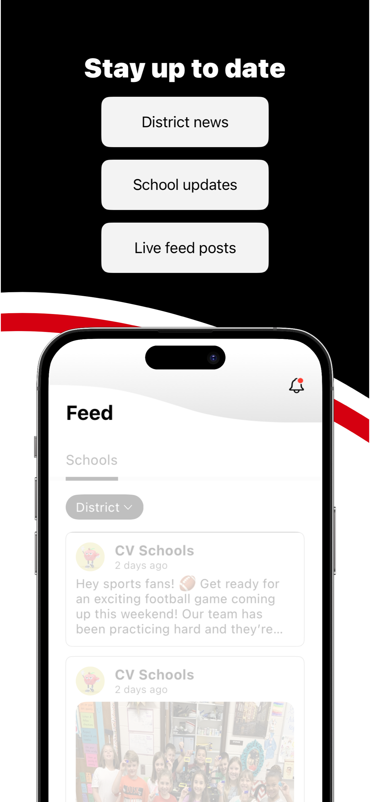 Introducing the official app for Cumberland Valley Schools, PA NEVER MISS AN EVENT The event section shows a list of events throughout the district....