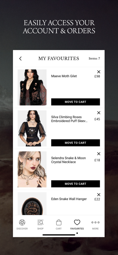 Really like the app. However, once you close out of the app anything you saved as a favorite gets deleted. Pretty annoying since I saved a lot of items and itโs a lot of work to go back through all the pages to relocate items you wanted to order in the future. Other than that I havenโt really noticed anything else negative about the app. Love Disturbia!