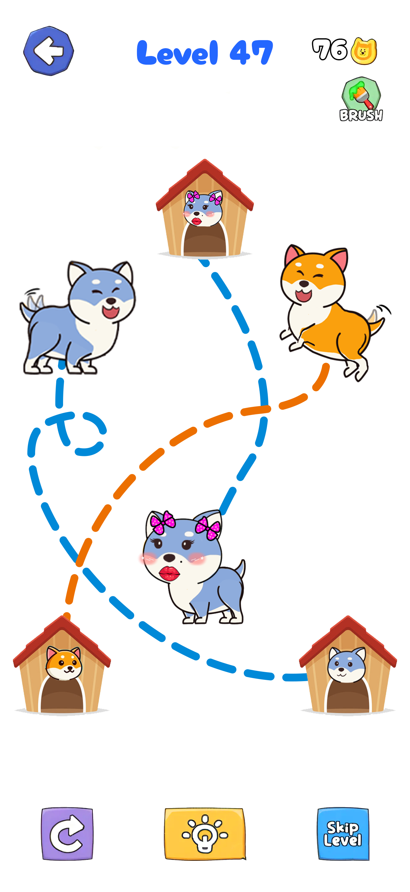 In Dog rush: Draw to save , your mission is to find the way to reach the dog house. Draw a line to connect dogs and their house. But how fastest you c...
