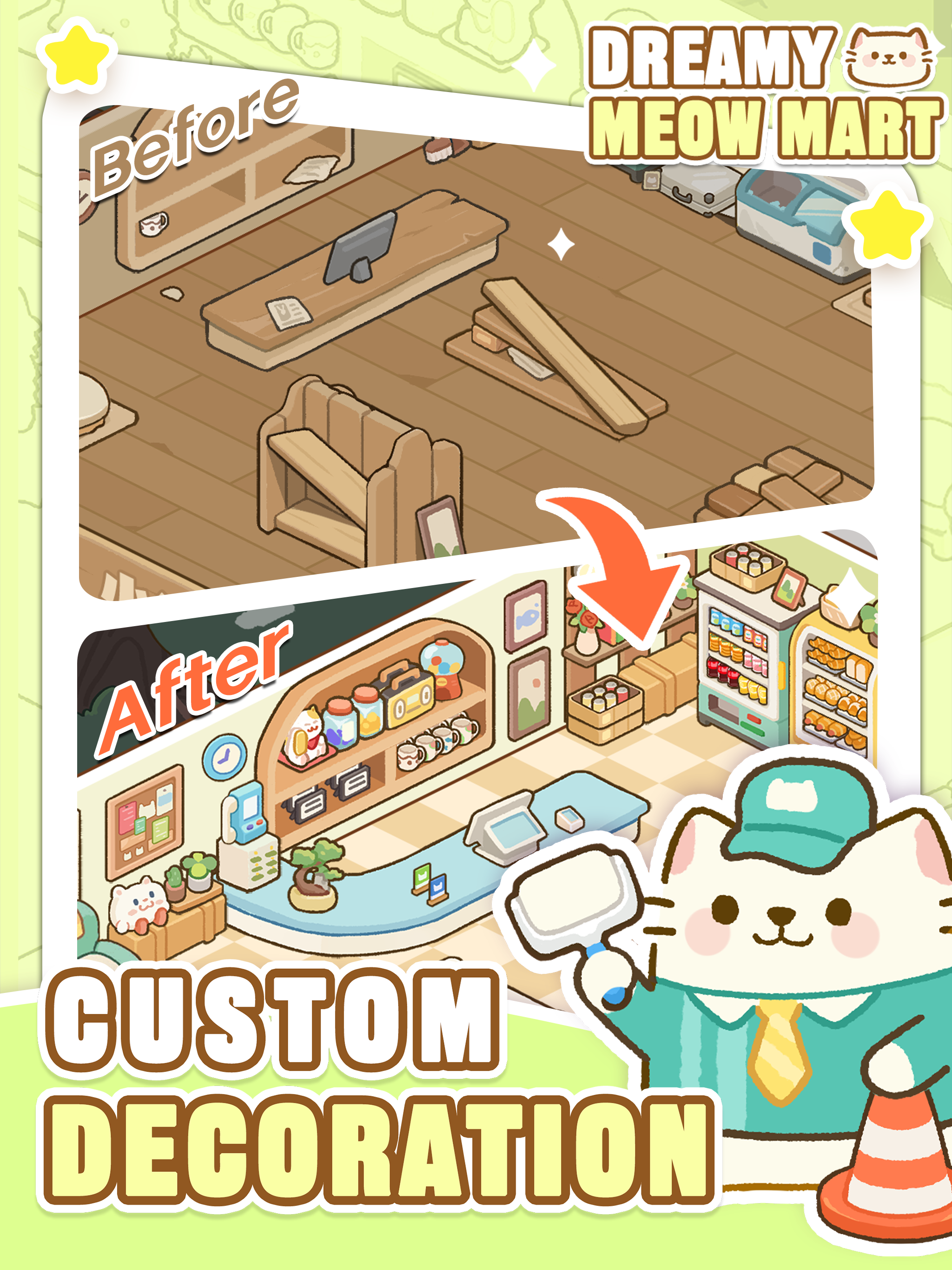 Interact with a set of endearing cat NPCs. Each has a distinct personality and story. Listen to their tales while serving them in your store, and buil...