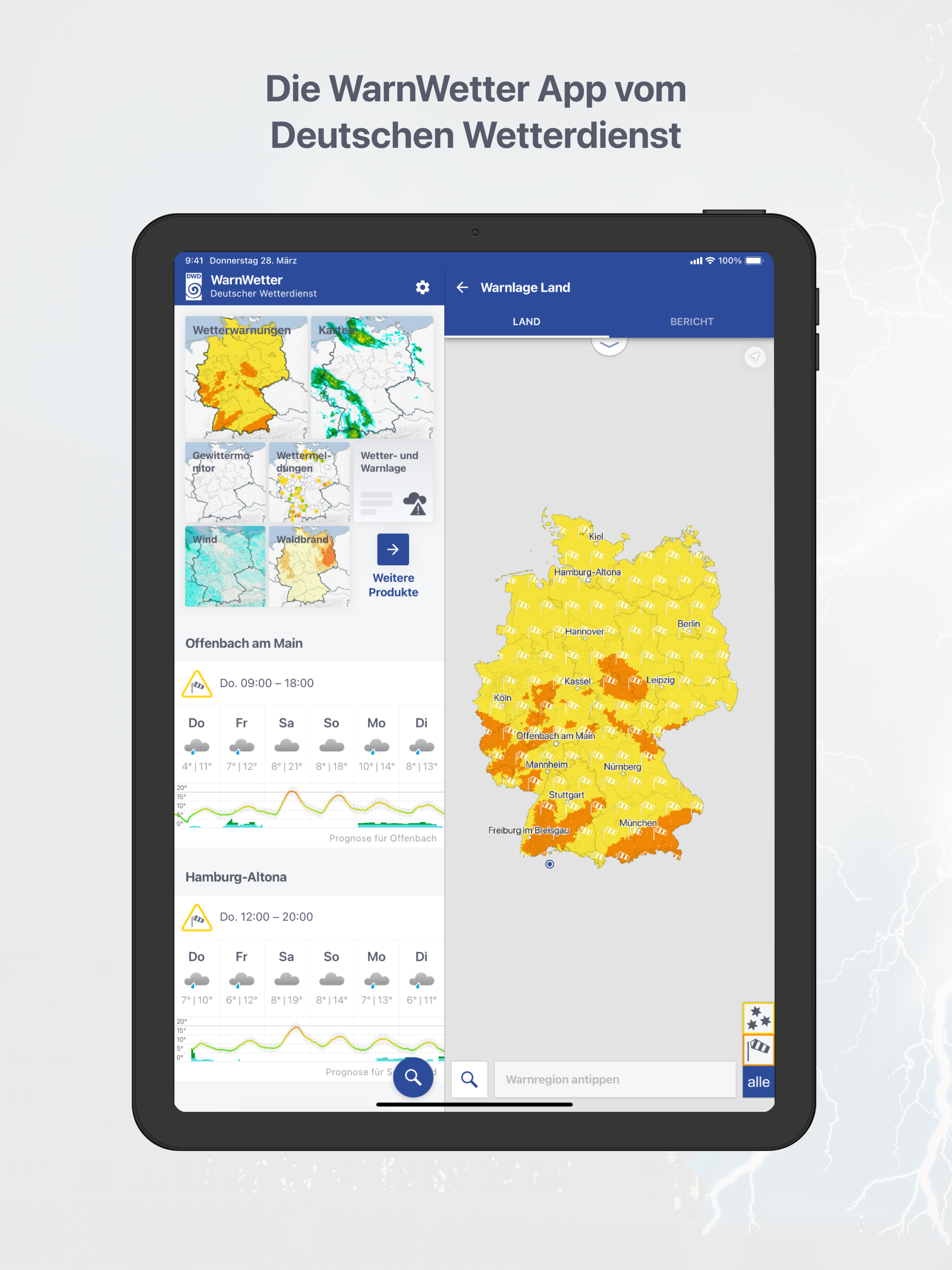 WarnWetter App, DWD National Meteorological Service of Germany The WarnWetter App offers the following functions (in the free version): • Current wa...