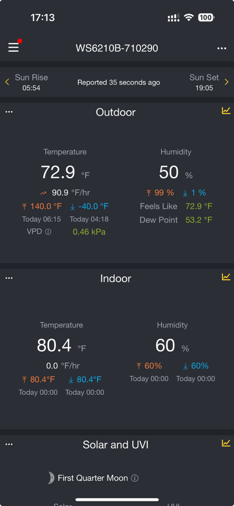 Although it’s not very efficient in using limited phone screen space, the app does a nice job providing current conditions and charting weather history. I also can’t get alerts to show as notifications, or summarized in badges in IOS. That Integration is long overdue. You shouldn’t have to check for alerts within the app or log into email to find out you have a system alarm that’s hours or days old.