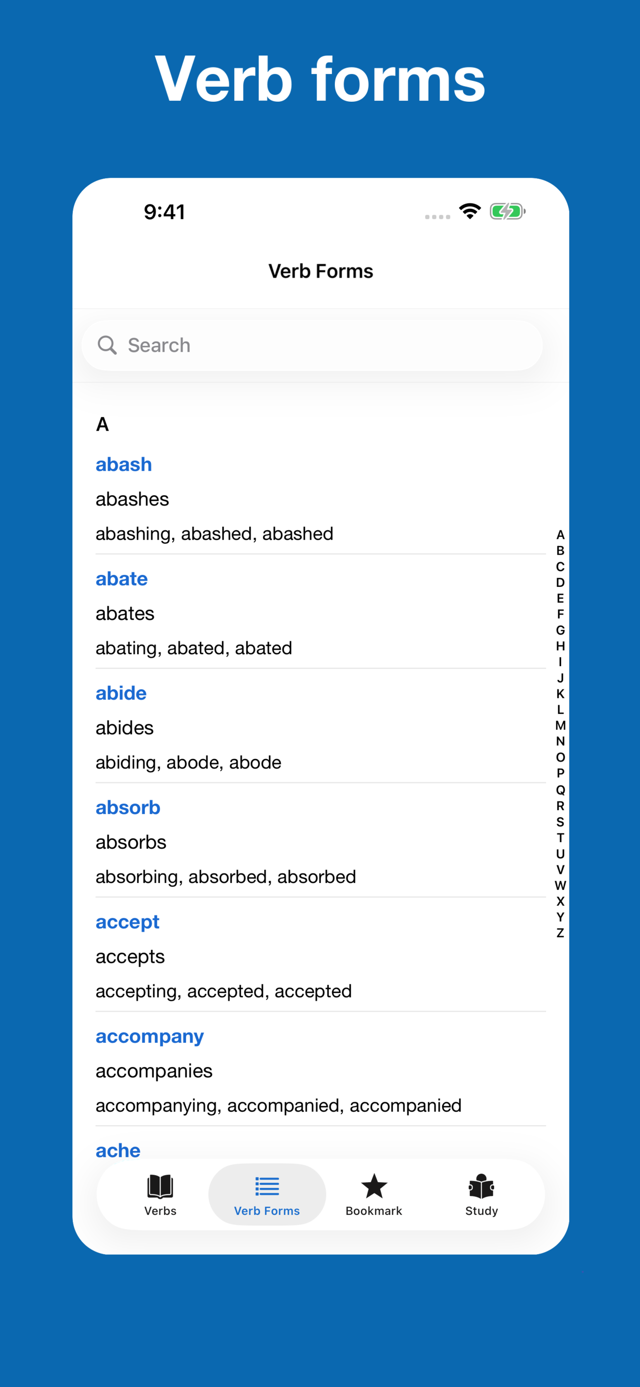 This app provides the digital tools and study material to help you learn how to conjugate over 2000 English verbs in all tenses. VERBS • Meaning an...