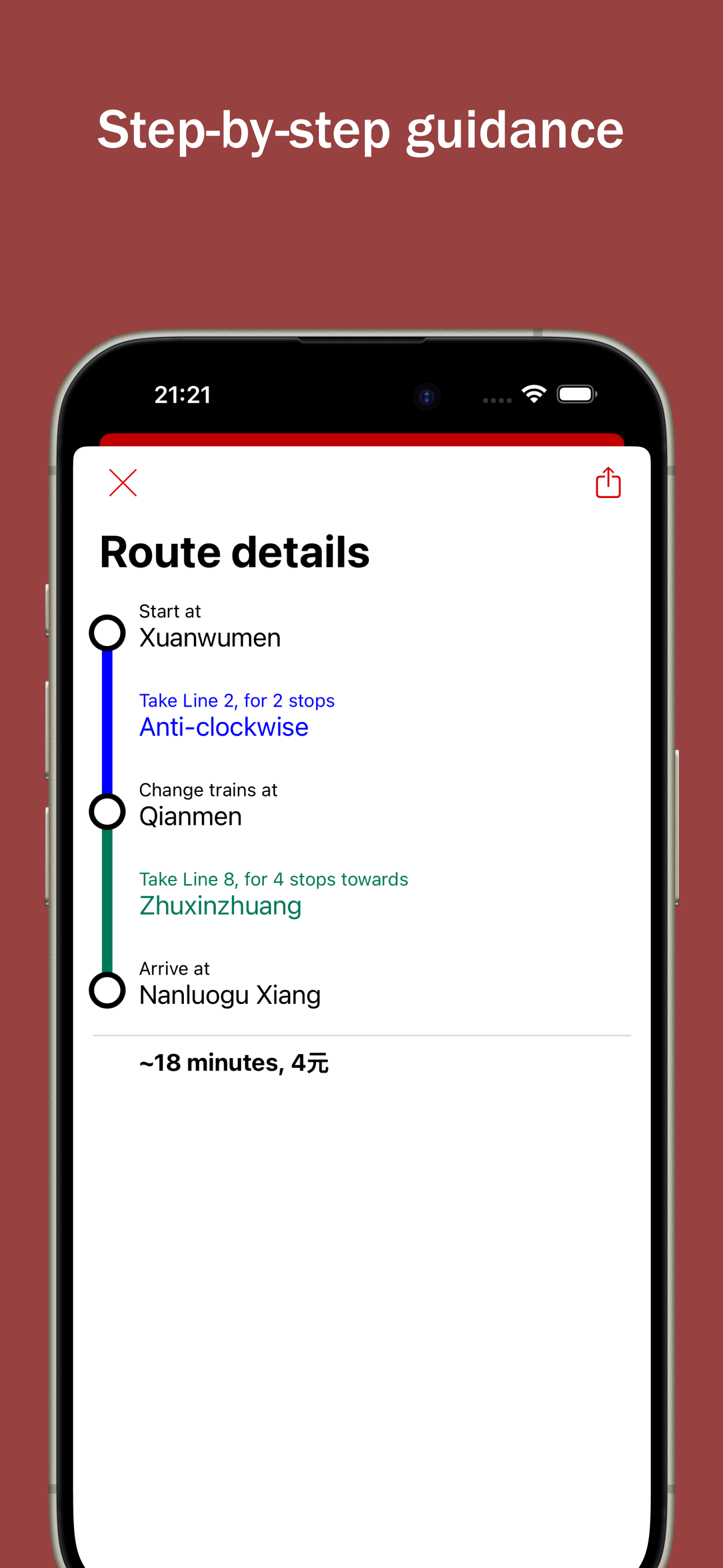 Thanks to this wonderful app I feel very confident navigating Beijing. The app can show English and Chinese names of stations. The planned route function slows me to estimate travel times.